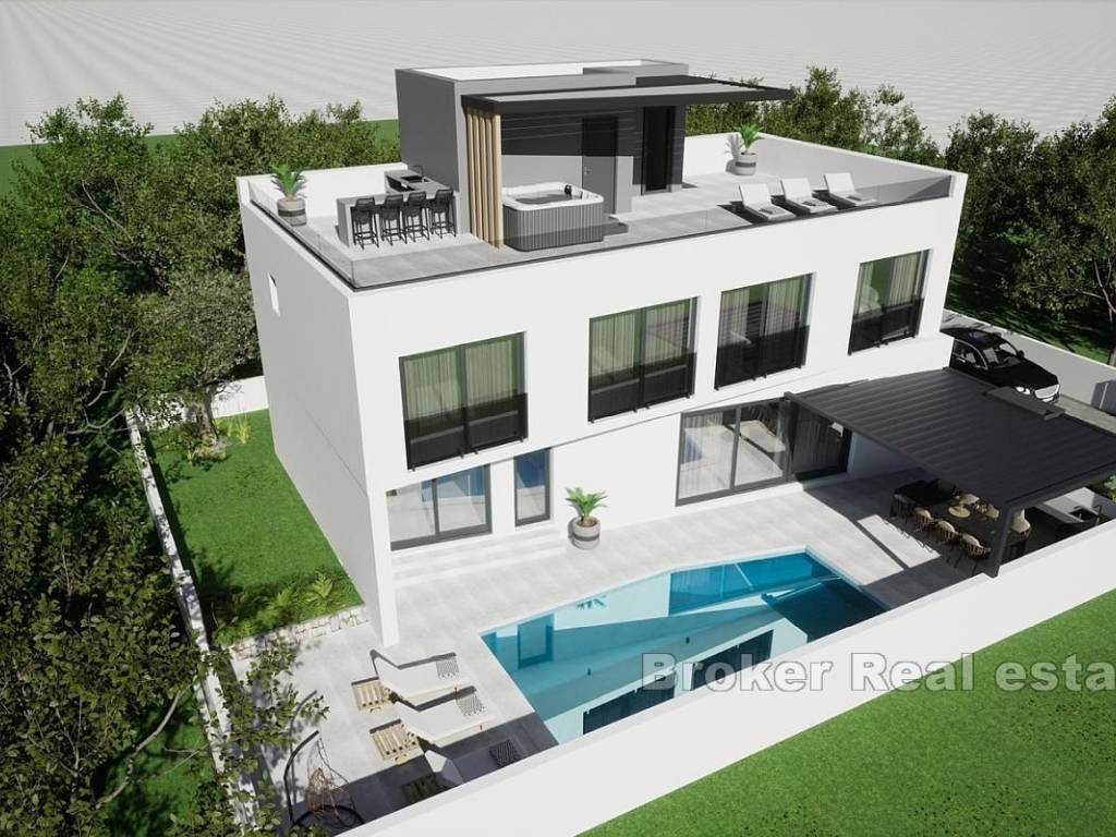 Located in a tranquil location just moments from the glittering coastline, this stunning villa under construction promises to epitomize luxury waterfront living. Spread over two impeccably designed floors, the residence boasts a generous total area of 187 square meters, ensuring ample space for comfortable living.