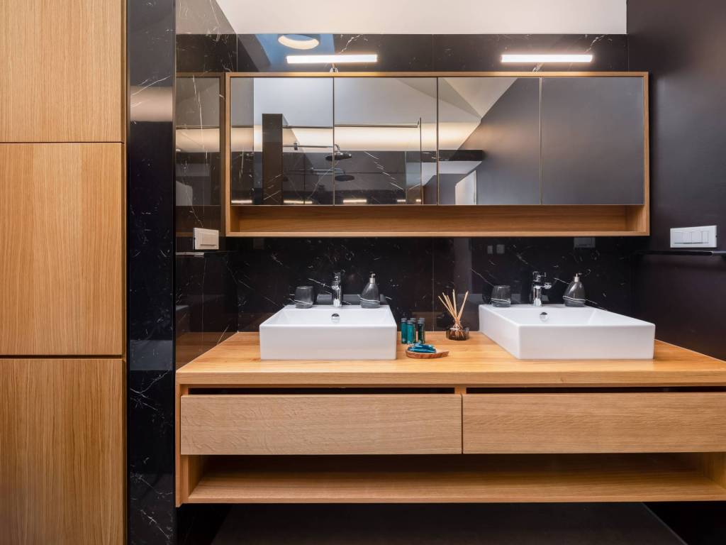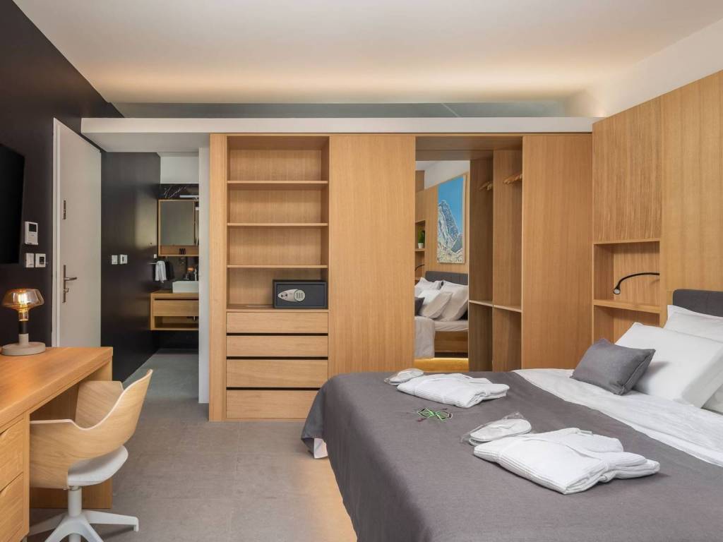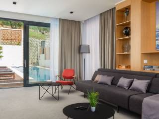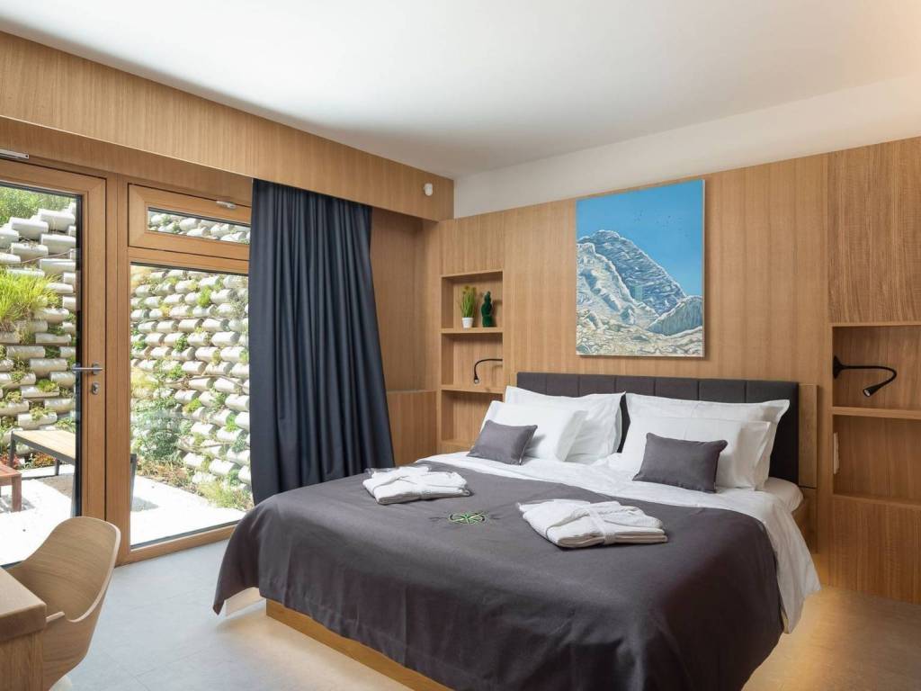 The villa is specific for the green roofs of the bedroom and living room, on each of these roofs there is an olive tree surrounded by Mediterranean plants. In addition to being an aesthetically pleasing detail, green roofs also serve as thermal insulation for the rooms where they are located, which saves energy. Access to elevators, chargers for electric cars and spaces is via coded cards.