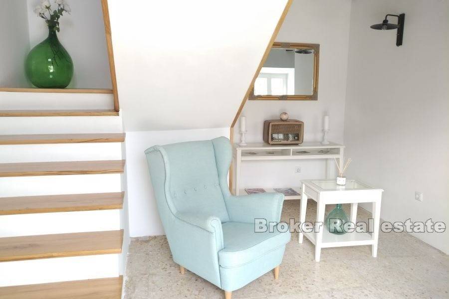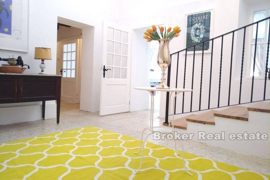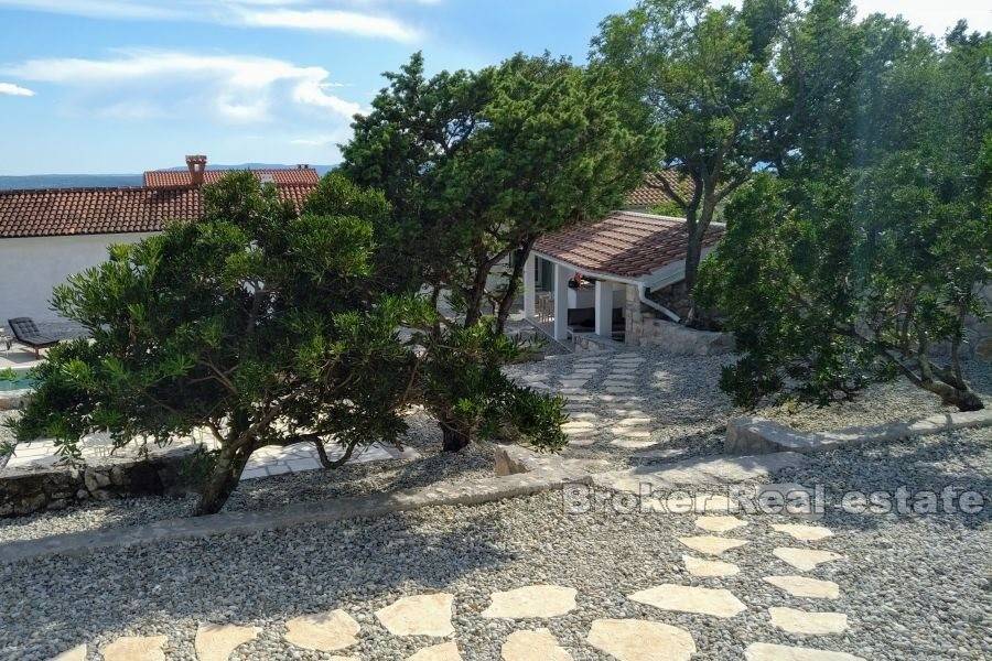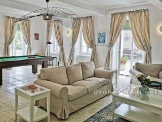 On the ground floor there is an equipped kitchen, a dining room, a large lounge with pool table, one bedroom and two bathrooms. On the first floor there is a living room with a library, four bedrooms with double beds and two additional bathrooms. The advantage of this property is two spacious terraces with a view of the sea.