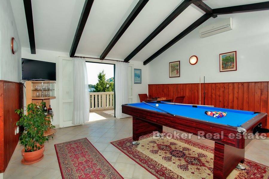The upper floor consists of two bedrooms, a bathroom and a large room with a pool table. From this room you go out onto an uncovered terrace, which is bathed in the sun.