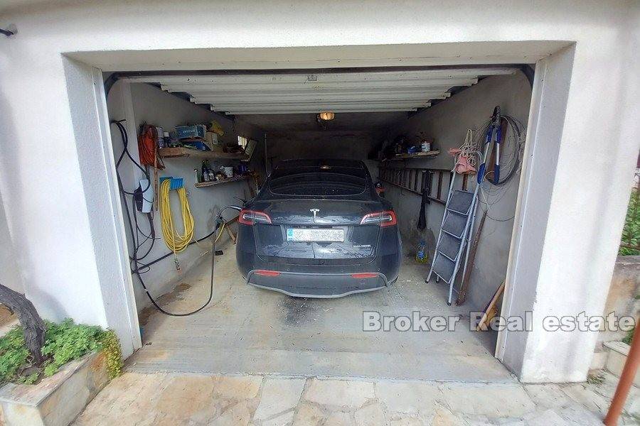 The second floor consists of 4 bedrooms, each with its own terrace with a view of the sea, bathroom, kitchen with access to the balcony. The property is equipped with air conditioning and a garage and parking for several cars, as well as an outdoor room for socializing with a barbecue. Due to the large garden, the house has the possibility of installing a swimming pool