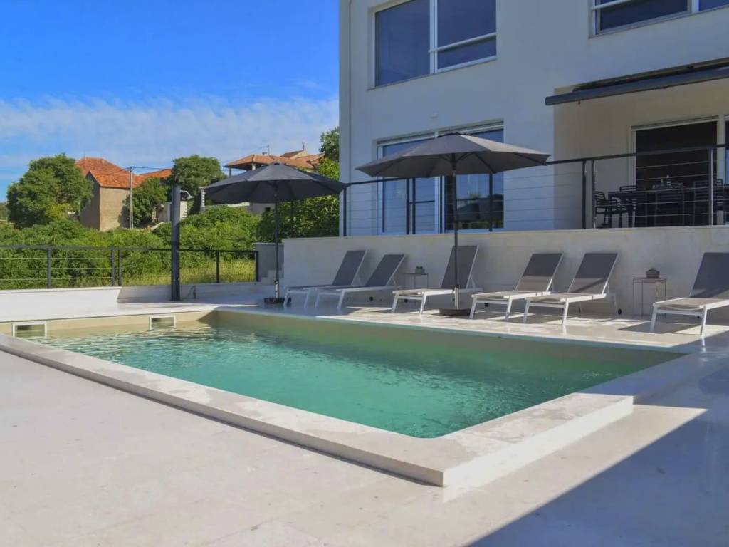 - Luxury swimming pool with sunbathing area
