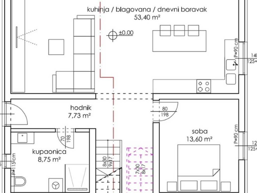 - Spacious open-plan living room with kitchen and dining area (53.40 m2)