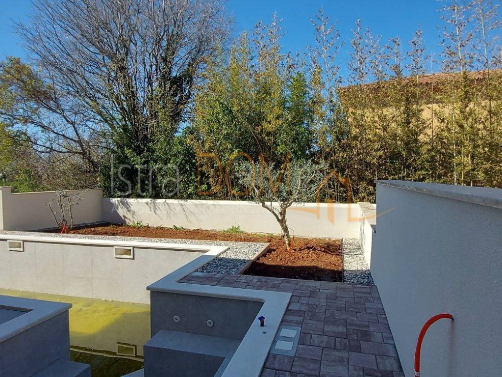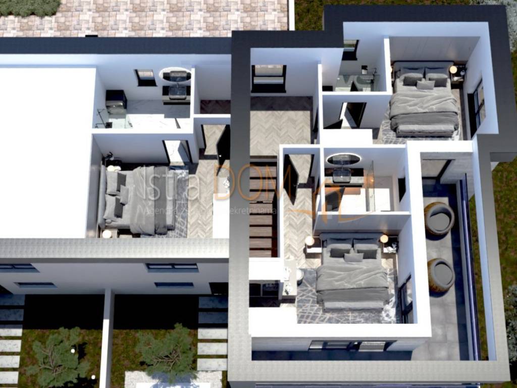 The ground floor is characterized by an open concept that connects the kitchen, dining room and living room, creating the perfect place for family gatherings and socializing. Large glass windows allow for plenty of natural light and provide direct access to the outdoor area with a swimming pool. Upstairs there are three comfortable bedrooms, each with its own bathroom, which guarantees privacy for all family members or guests. Two bedrooms share a spacious terrace, ideal for enjoying morning coffee or evening relaxation. Each room is equipped with air conditioning.