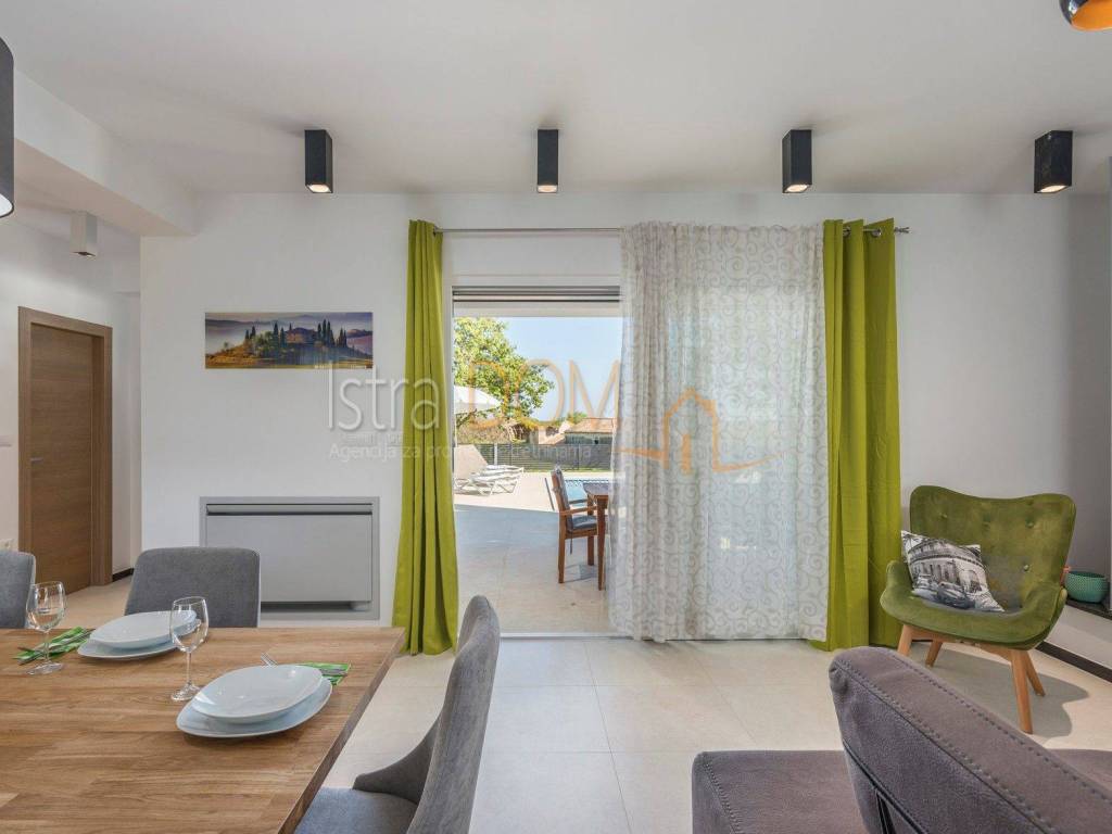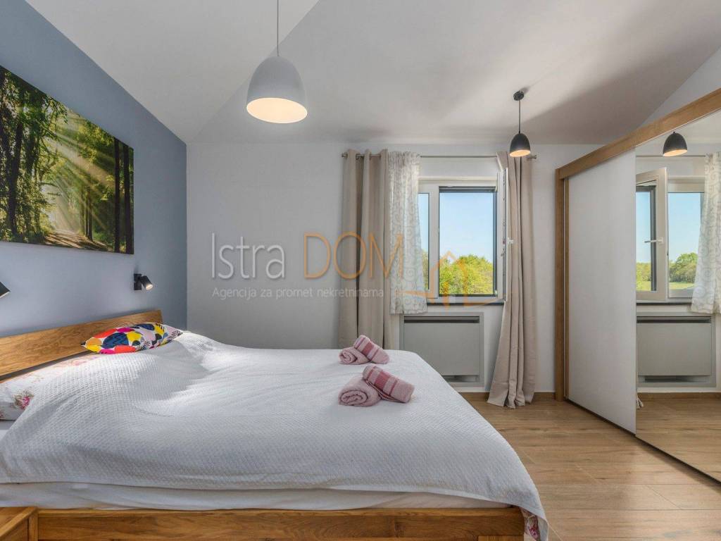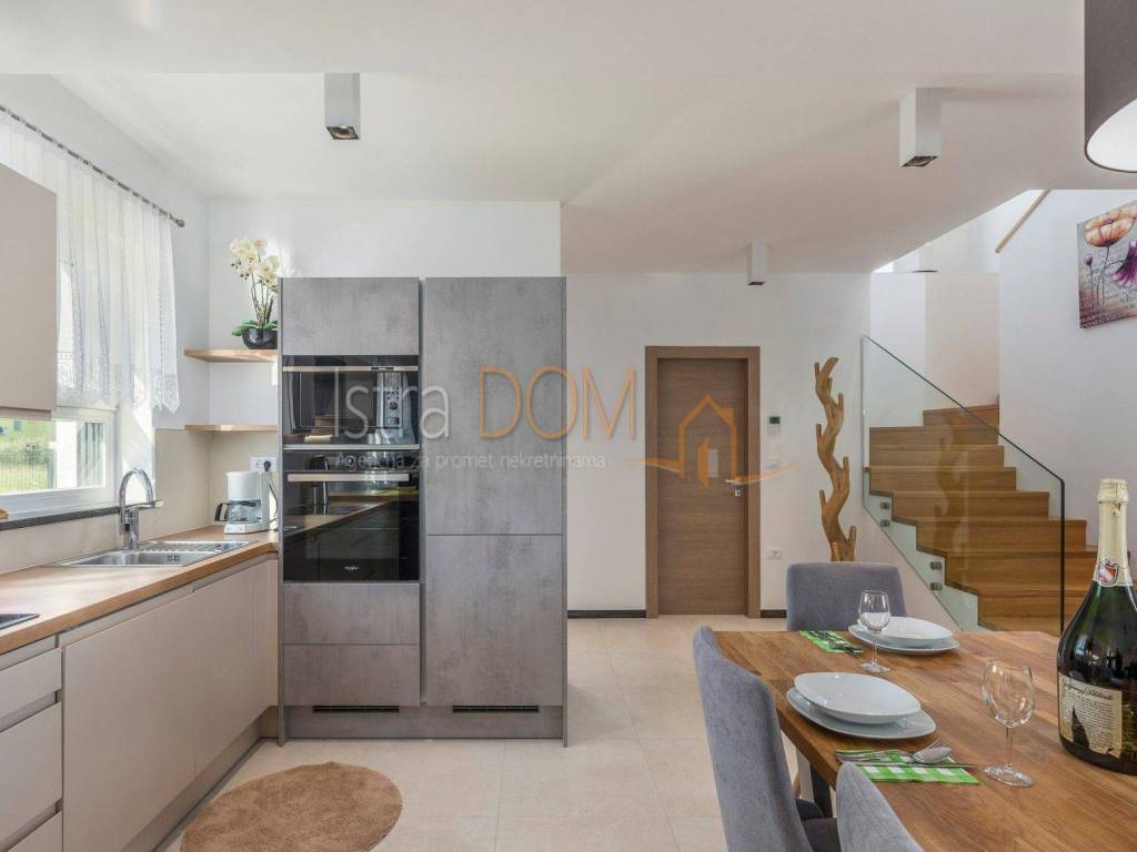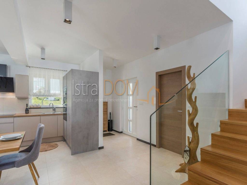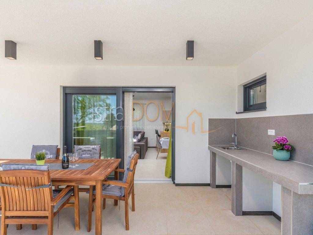 This modern detached villa in Marčana is an ideal place for family life or as an investment opportunity for rental. On the ground floor there is a spacious living room that is perfectly lit by natural light, and there is a separate dining room that provides a pleasant atmosphere for family meals. In addition, a toilet on the ground floor further facilitates everyday use.