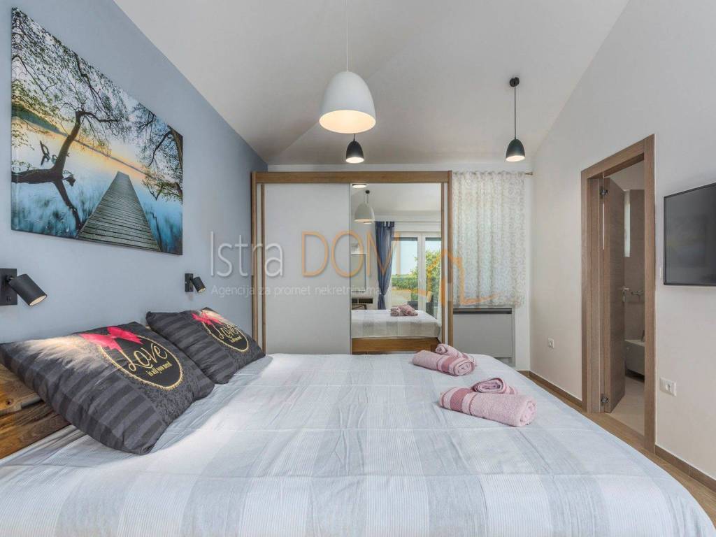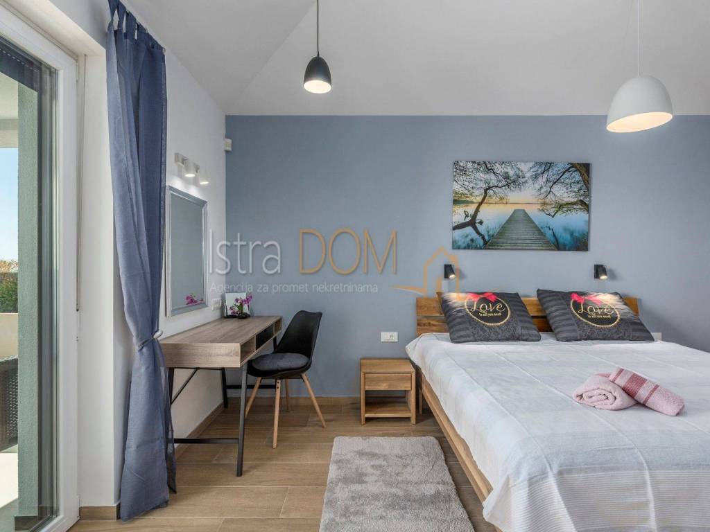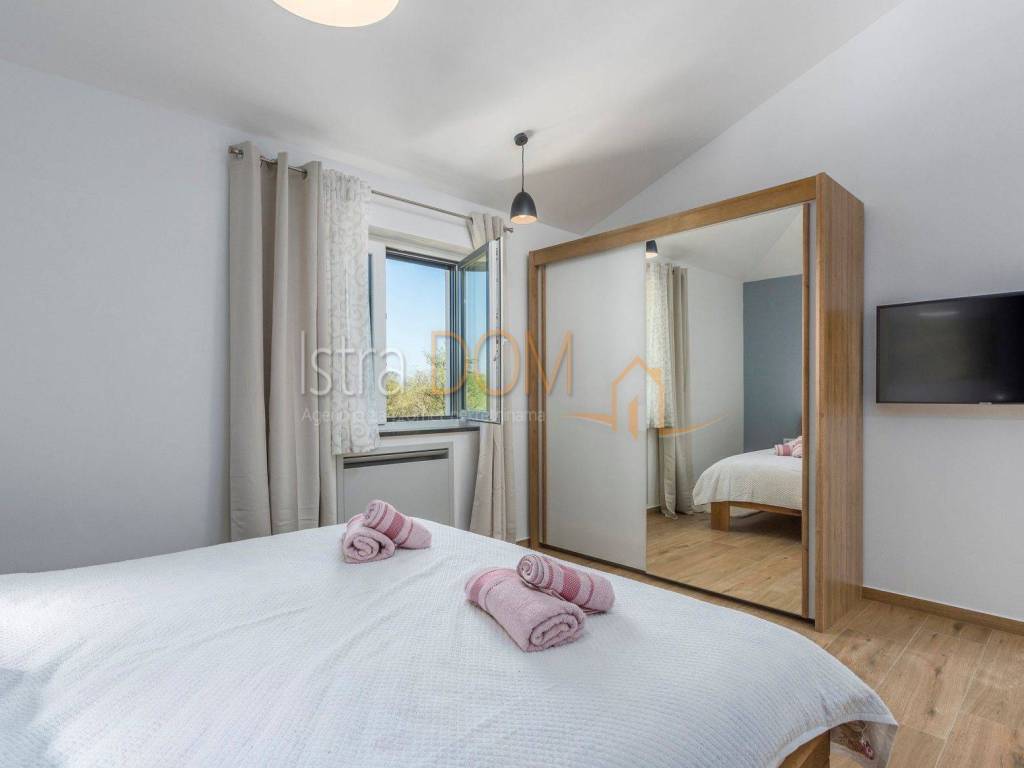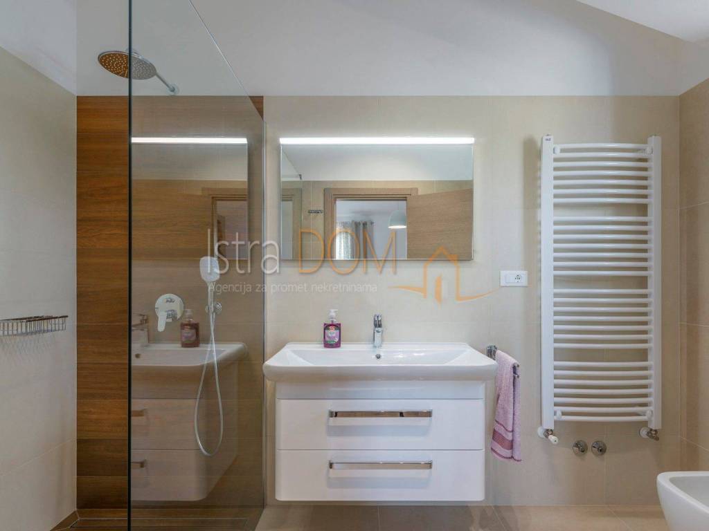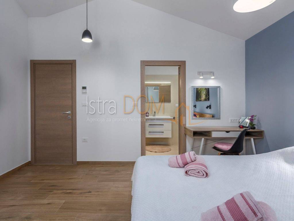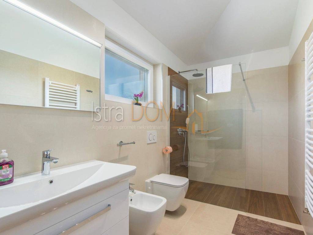 This modern detached villa in Marčana is an ideal place for family life or as an investment opportunity for rental. On the ground floor there is a spacious living room that is perfectly lit by natural light, and there is a separate dining room that provides a pleasant atmosphere for family meals. In addition, a toilet on the ground floor further facilitates everyday use.