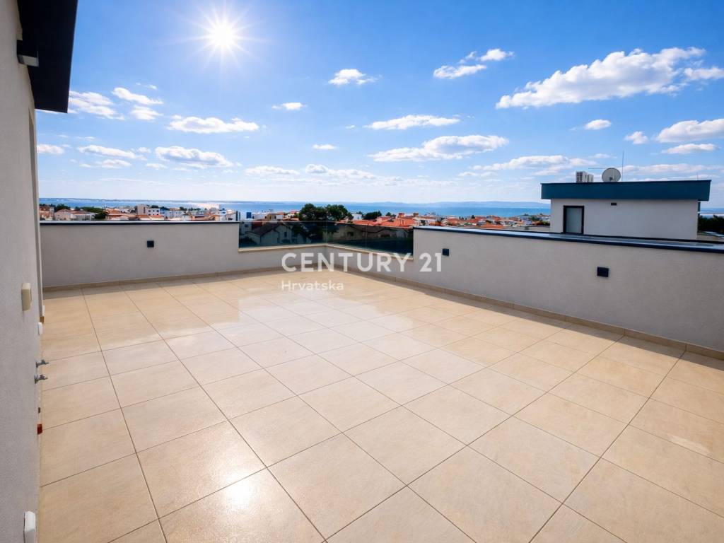 A special feature of the apartment is the rooftop terrace of approximately 50 m2 with an open sea view. The terrace adjacent to the living room also offers a sea view. The apartment has two additional smaller terraces.