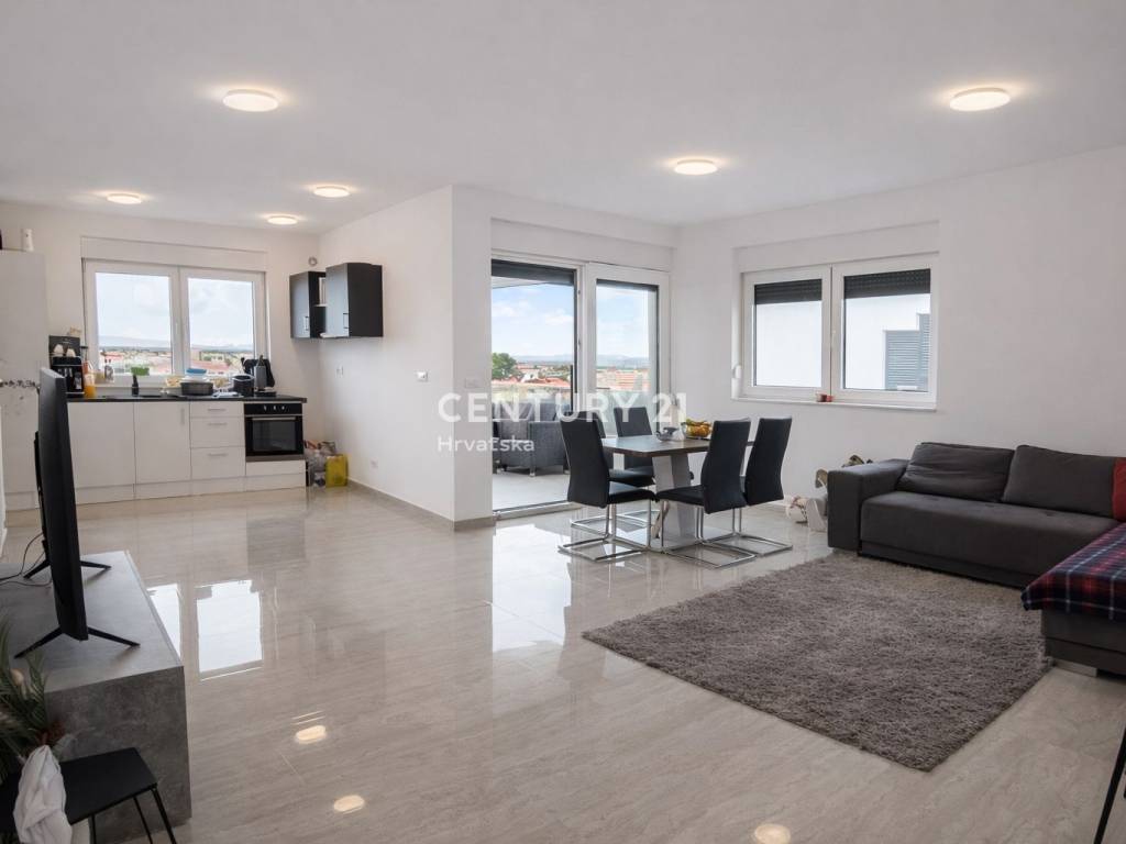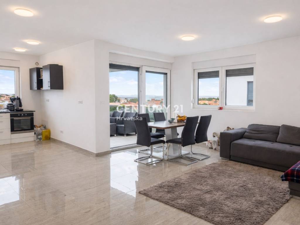 Spacious duplex apartment for sale on the island of Vir, with a total calculated area of 168.90 m2, featuring four terraces and two designated parking spaces.
