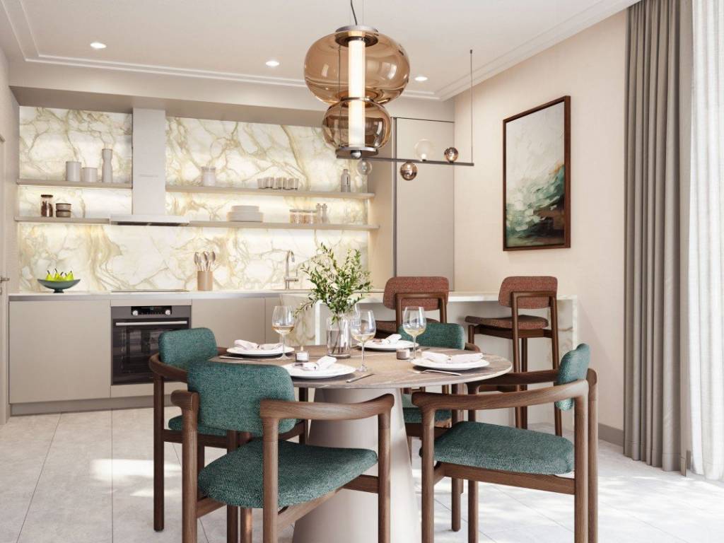 The space is organized through an open living room with kitchen and dining area, two bedrooms and two bathrooms, achieving an optimal balance between comfort and functionality. The living area opens onto the terrace with large glass walls, creating a natural transition between the interior and the Mediterranean environment. The interior is designed according to the concept of an international design studio specializing in luxury hotel and residential projects. The emphasis is on natural tones, warm textures and long-lasting quality of materials, while the kitchens are equipped with appliances from renowned manufacturers.