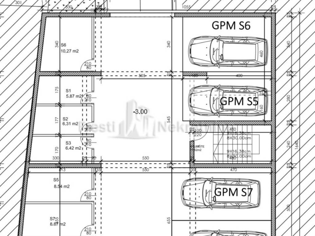 2 parkirna mjesta od kojih je jedno GPM (garažno parkirno mjesto):19,93 m (netto 9,97 m)