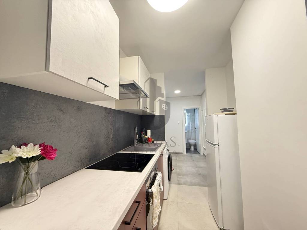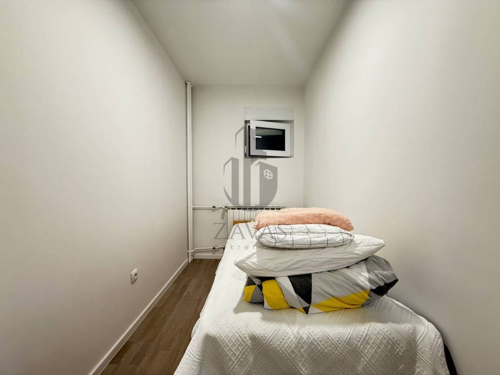 Sastoji se od: dnevnog boravka s izlazom na veliki balkon, kuhinje, spavaće sobe, kupaonice s wc-om i hodnika.