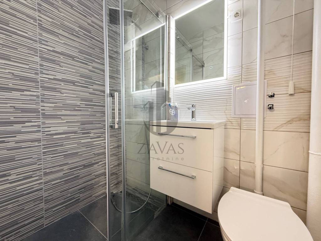 Stan je kompletno renoviran i to: nove instalacije struje i vode novi podovi u dnevnom boravku, kuhinji, blagovaoni, hodniku, balkonu i kupaonici nove sanitarije u kupaonici nova kuhinja i namještaj nova PVC stolarija nova protuprovalna i sobna vrata novi klima uređaj