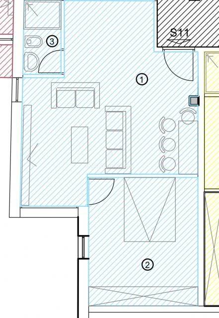 A one-bedroom apartment for sale in Crikvenica, located on the first floor of a newly renovated residential building. The apartment consists of an open-plan kitchen, dining area and living room, bathroom and bedroom, with a total living area of 42.80 m².