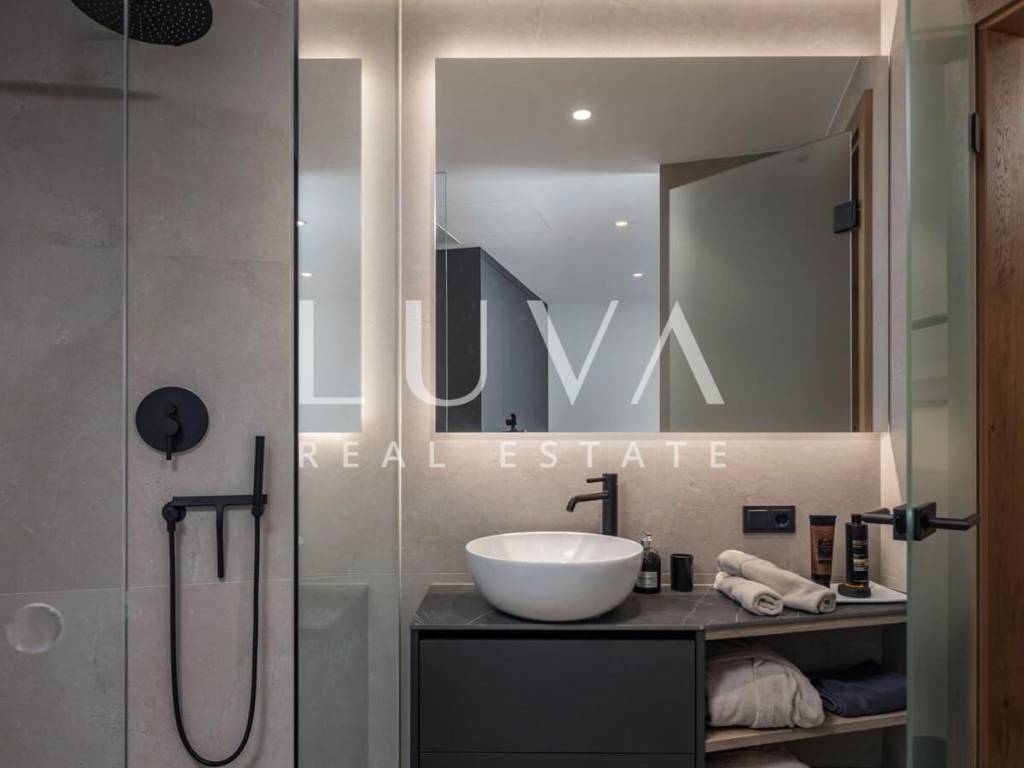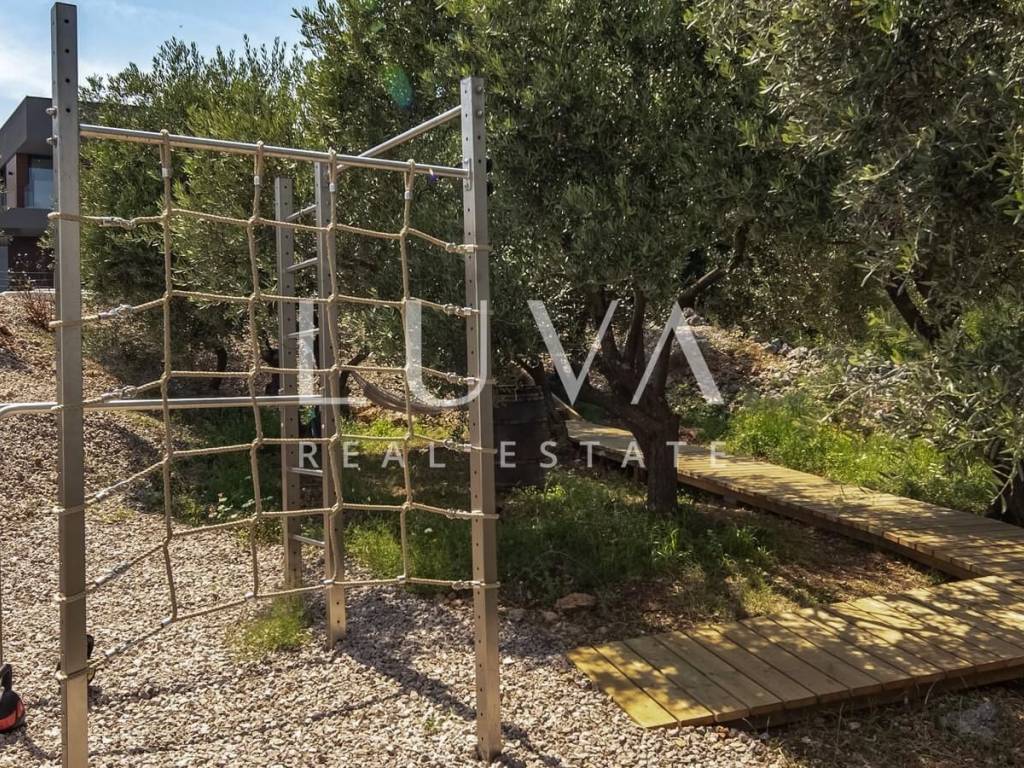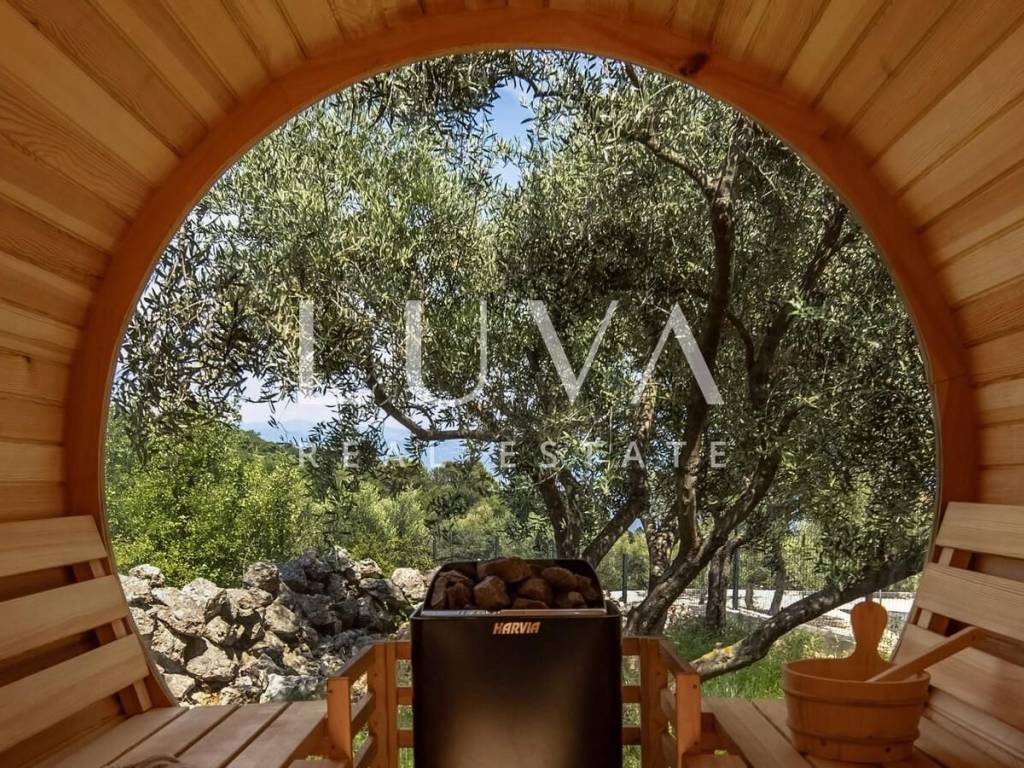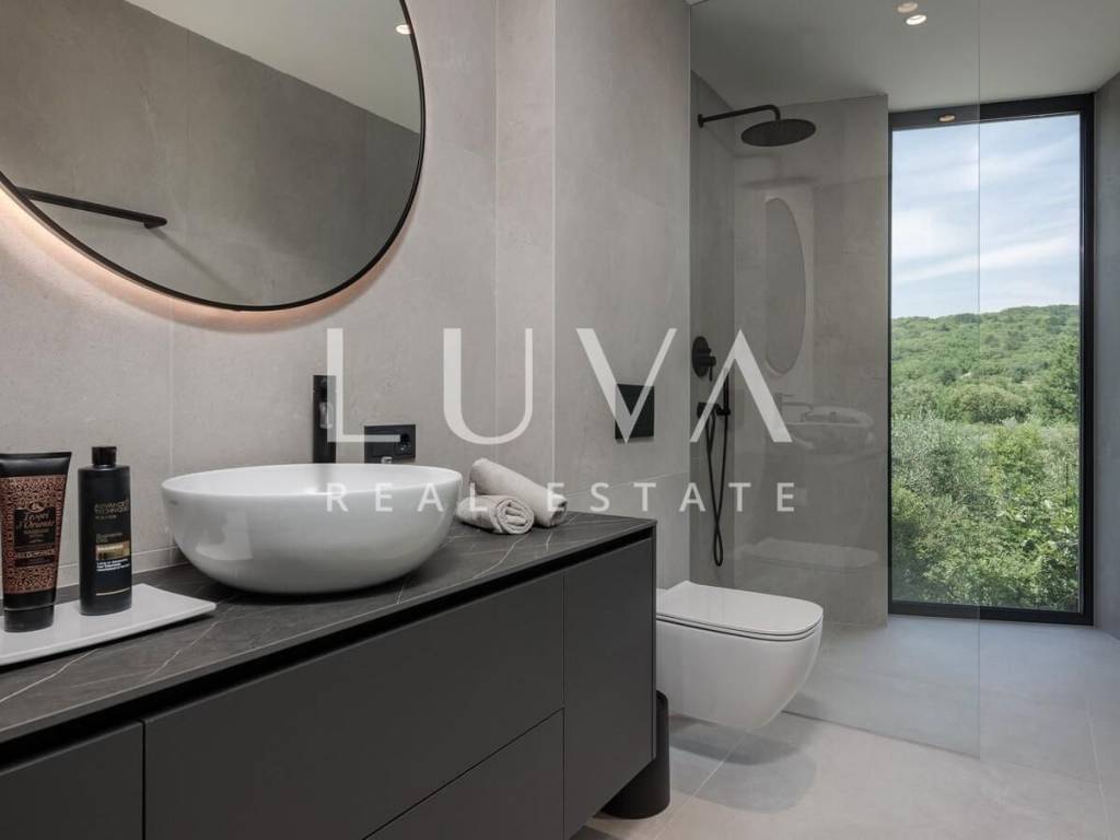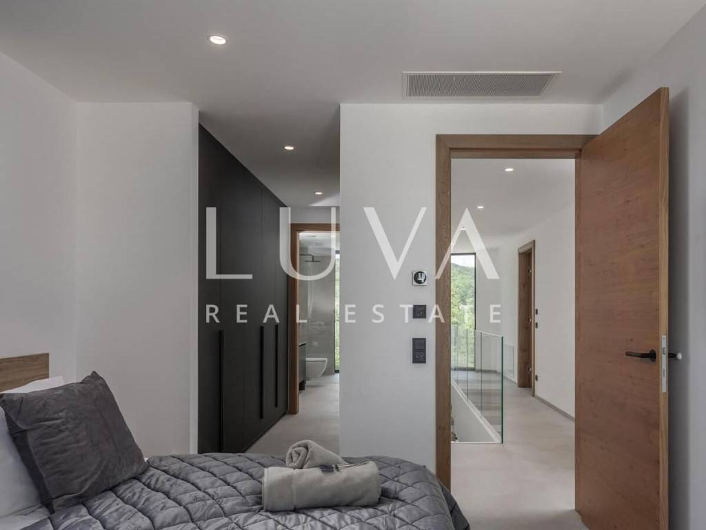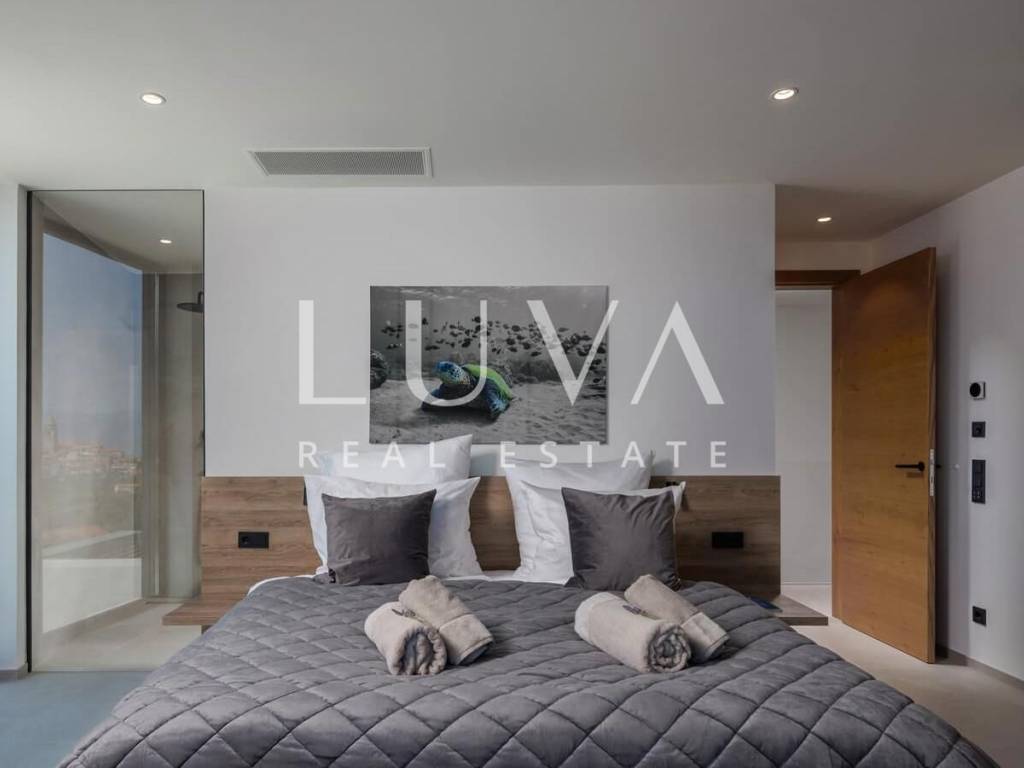 In the peaceful and authentic setting of Vrbnik on the island of Krk, just 300 meters from the sea, lies this newly built luxury villa – ideal for those seeking privacy, elegance, and comfort for an extended stay. Completed in 2024, the villa sits on a fully fenced plot of 1,150 m², with a living space of 200 m².