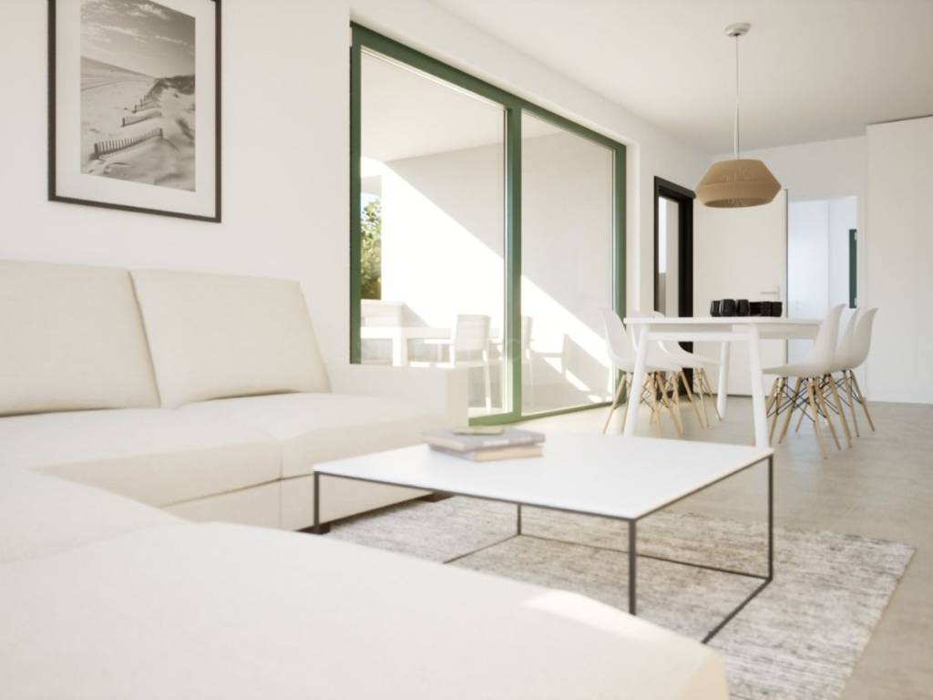 The apartment is situated on the first floor of a modern residential building. Its total area is 98 m² and it consists of an open‑space living room with kitchen and dining area, three bedrooms and two elegantly designed bathrooms. The living room opens onto a covered terrace of 17 m², ideal for relaxing and enjoying the outdoors. The apartment includes one parking space. Completion of construction is planned by the end of 2026.