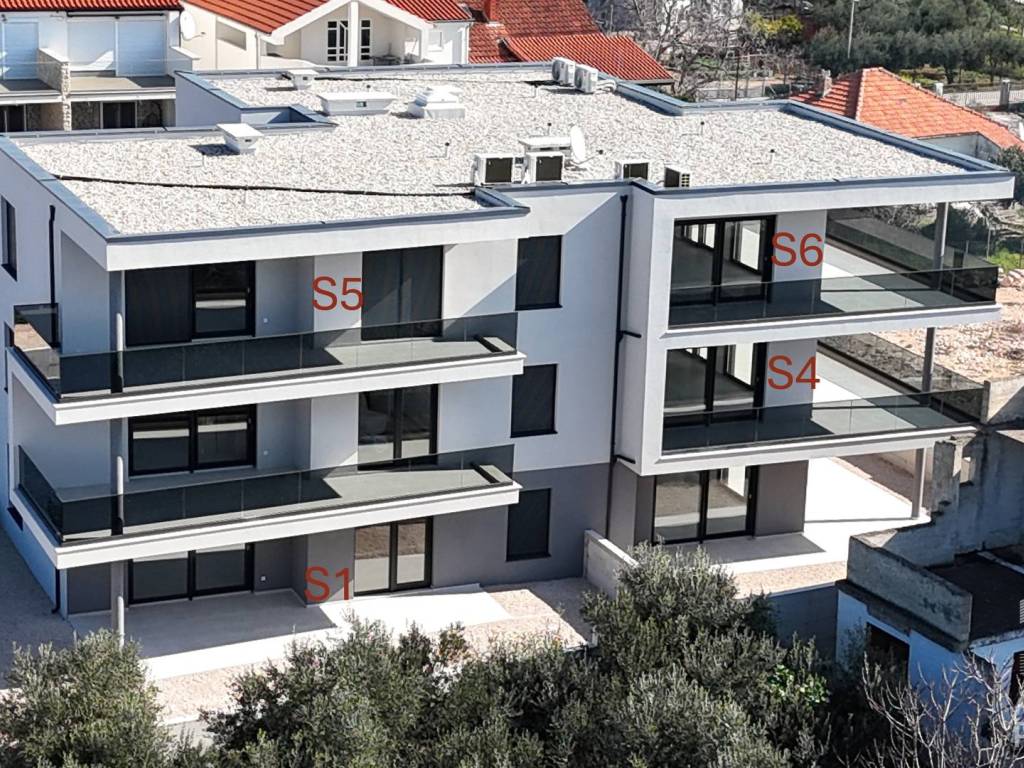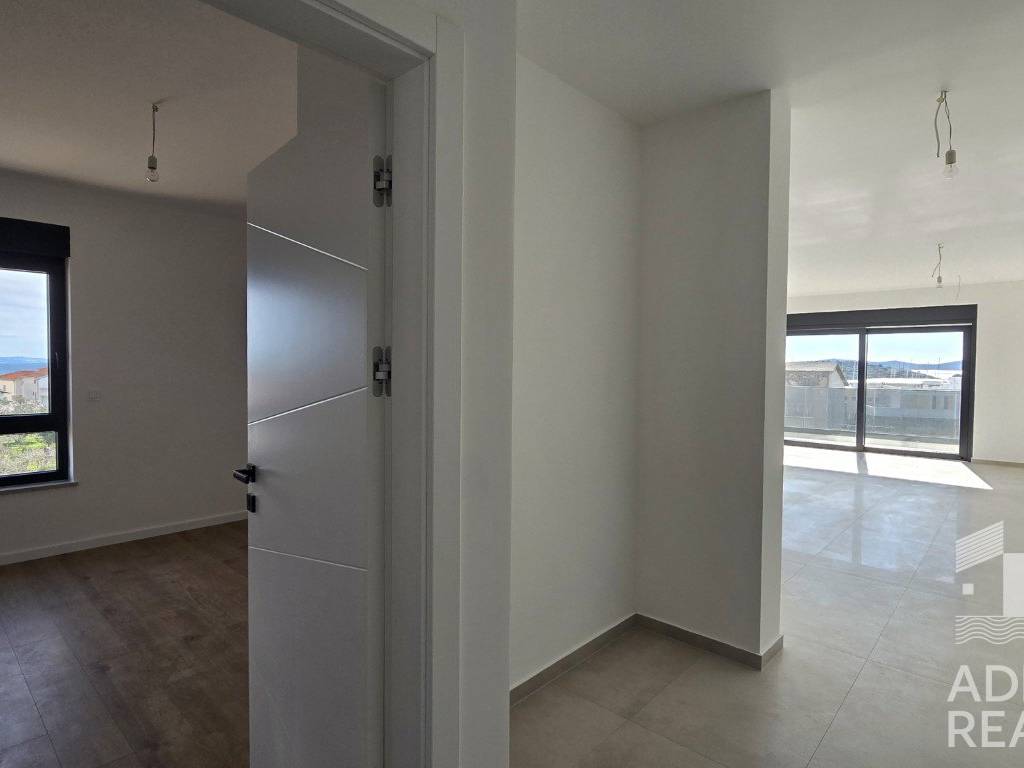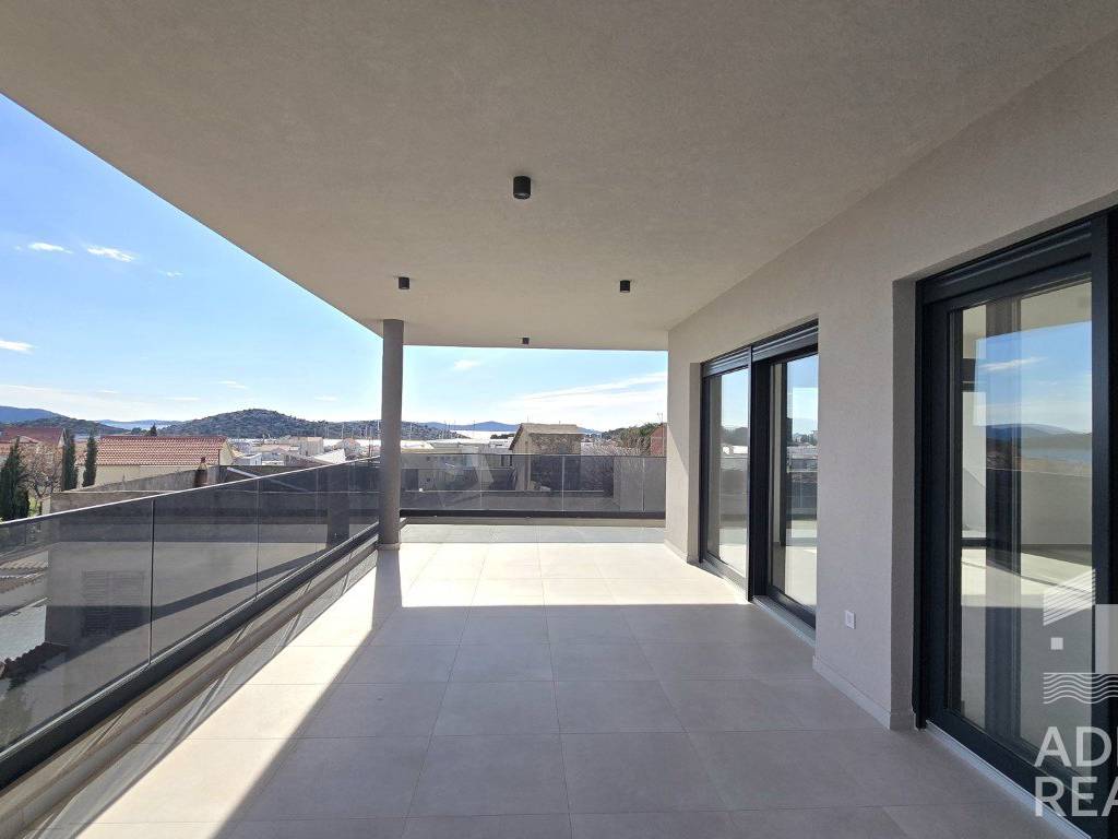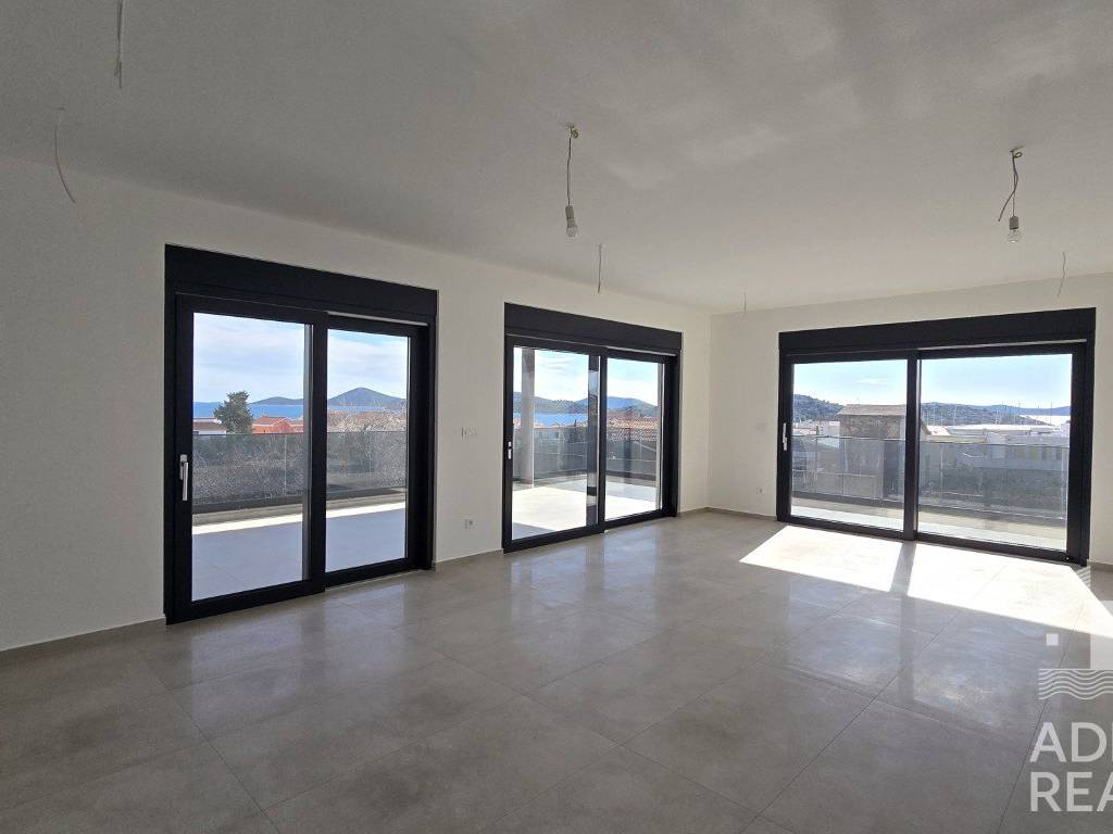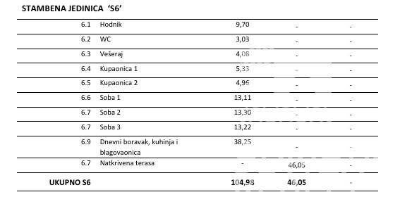 For sale is a spacious apartment S6 located on the second floor of a modern building with a total of six residential units in Tribunj. The net interior area is 104.98 m2, and it consists of an entrance, hallway, kitchen, dining room and open-concept living room with access to a covered terrace of 46.05 m2. The rest of the apartment has three bedrooms, two bathrooms, one of which is part of the master bedroom, an additional toilet and a laundry room.