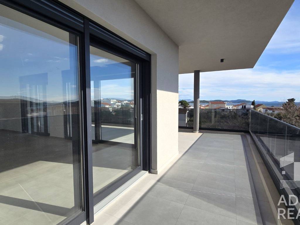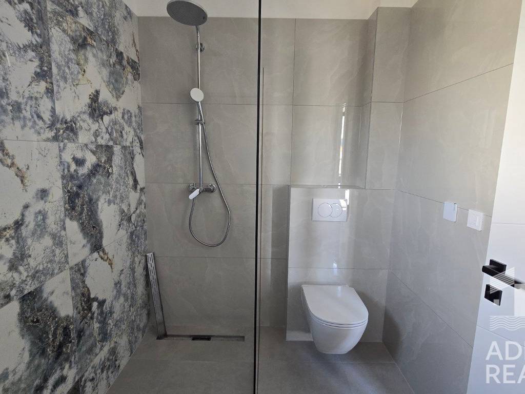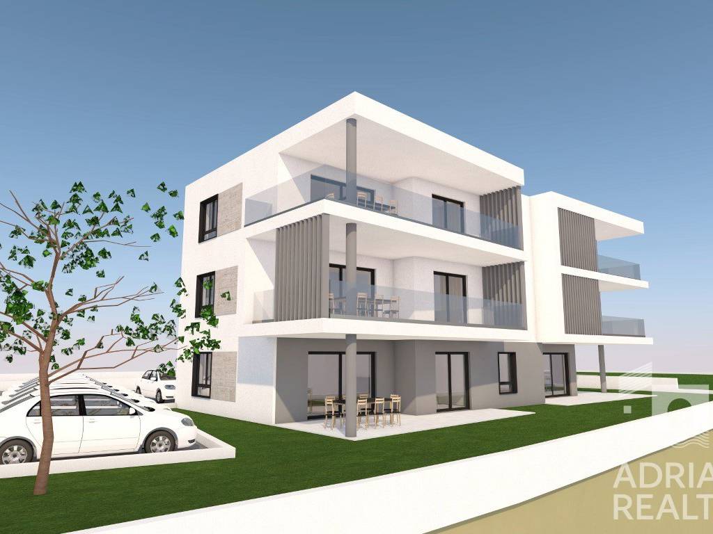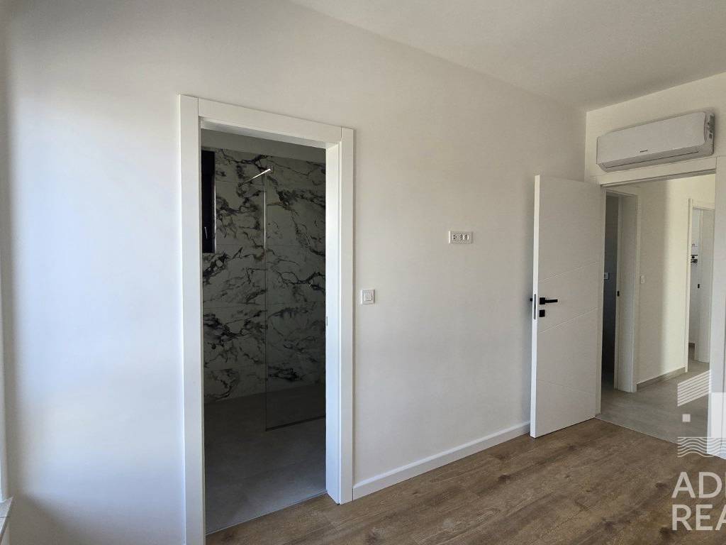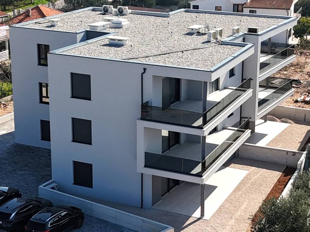 For sale is a spacious apartment S6 located on the second floor of a modern building with a total of six residential units in Tribunj. The net interior area is 104.98 m2, and it consists of an entrance, hallway, kitchen, dining room and open-concept living room with access to a covered terrace of 46.05 m2. The rest of the apartment has three bedrooms, two bathrooms, one of which is part of the master bedroom, an additional toilet and a laundry room.