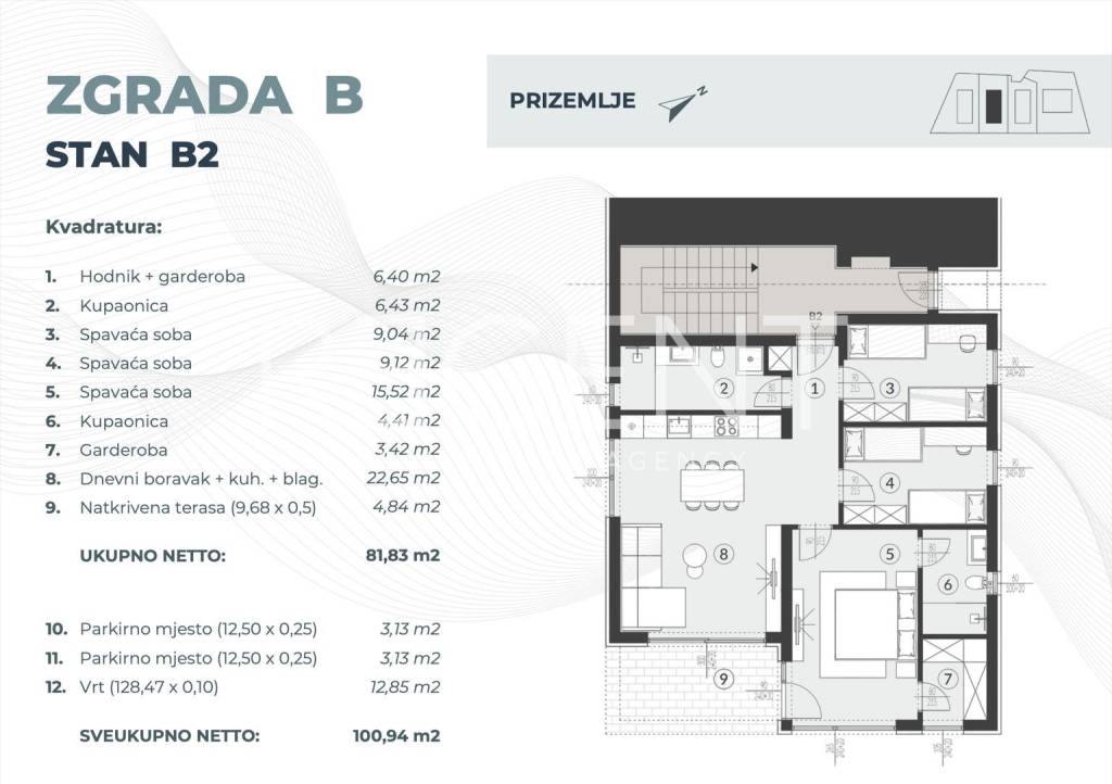 The ground floor apartment located in an excellent location in Fažana is situated in a quality new building and is ideal for families, couples, or investors looking for a property suitable for tourist rental or a long-term secure investment. The apartment has a total net area of 47.28 m², while the total calculated area with accessories is 55.08 m². It consists of a hallway with a wardrobe of 5.04 m², a bathroom of 5.06 m², a spacious bedroom of 13.76 m², and a living room with a kitchen and dining area with a total area of 23.42 m², designed in an open and functional layout that allows maximum use of space and plenty of natural light. The apartment also includes a garden with a calculated area of 5.41 m² (actual area 54.08 m²) which provides additional privacy and the possibility of arranging it according to your own wishes, as well as a parking space with a calculated area of 3.13 m² (12.50 m² actual area), which is a significant advantage throughout the year, especially during the tourist season. The new building ensures modern construction standards, energy efficiency, and the long-term value of the property. Fažana is one of the most sought-after places on the west coast of Istria, known for its well-maintained beaches, crystal clear sea, and the immediate vicinity of the Brijuni National Park. In addition to the authentic Mediterranean atmosphere, the place offers all the necessary amenities for a quality life – shops, restaurants, seaside promenades, bicycle paths, and excellent traffic connections with Pula and the rest of Istria. Precisely because of the combination of a quiet location and strong tourist demand, properties in Fažana represent a safe and long-term profitable investment. The project starts construction at the end of the year, with the possibility of payment in construction phases and flexible conditions. For additional information and arrangements for viewing, we are at your disposal.