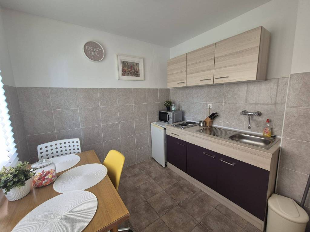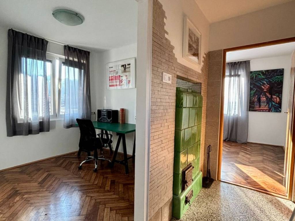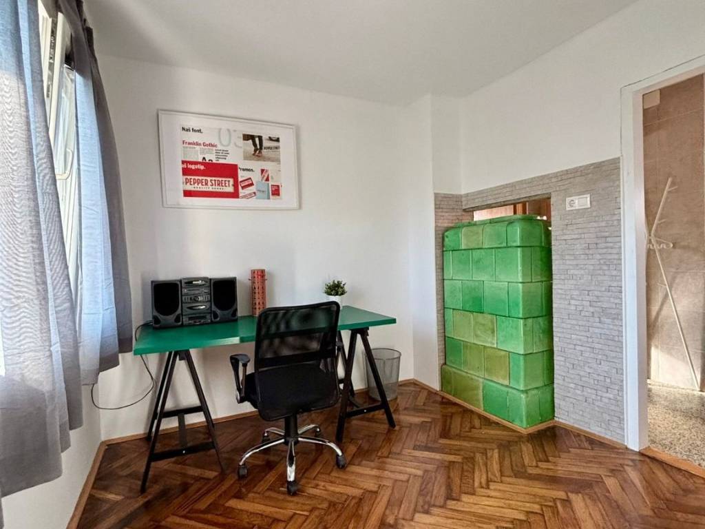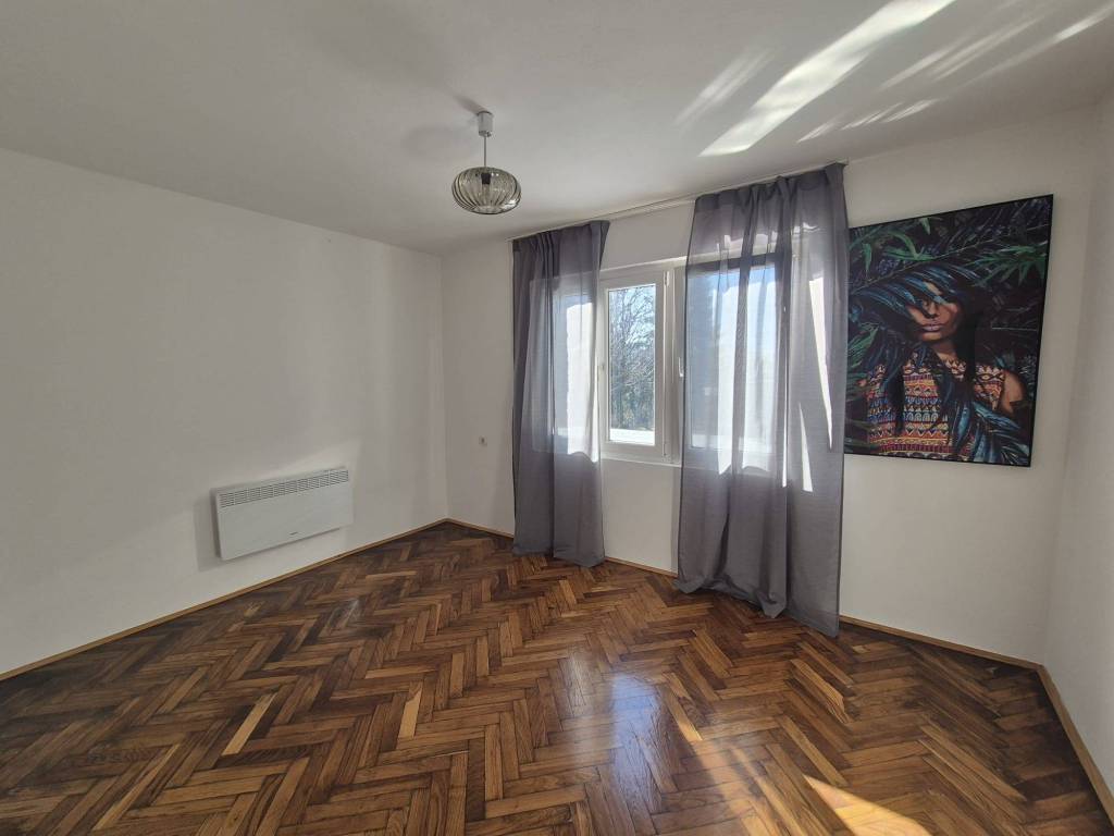 Kuća se sastoji od kuhinje s blagovaonicom, dvije sobe i kupaonice. Električno grijanje, PVC prozori, peć na drva. Mogućnost najma nenamješteno ili namješteno, parkirno mjesto u dvorištu. Nalazi se u Gračanima blizu tramvajske stanice br. 15 i autobusne stanice na Gračanskoj cesti. Polog 900 Eur. Agencijska provizija 1 najamnina.