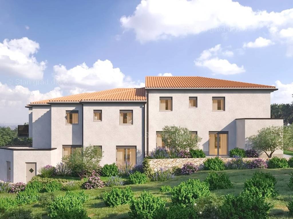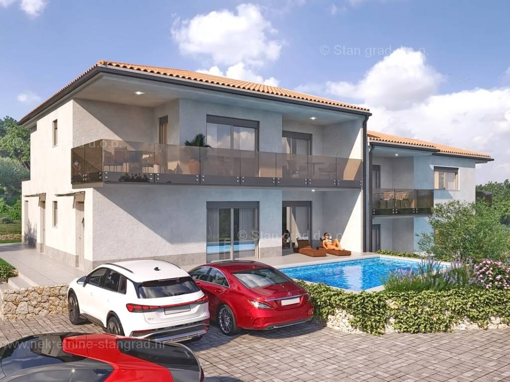 The Stan Grad Immobilien agency is selling an exceptional apartment built according to a modern project on the attractive northern Adriatic area of ​​the island of Krk. The offered apartment is in an urban and well-maintained location, close to the sea, the center and all necessary facilities in Vrbnik. Considering the property by type, this is a spacious one-story apartment. In a top-quality building, the apartment is located on the ground floor. The total area of ​​this apartment is 75 m2. Inside the mentioned area are an entrance hall, a toilet, 2 bedrooms, a bathroom, a kitchen with a dining room and a living room with access to a covered terrace and garden. It is important to note that the ownership of this apartment includes a well-organized garden with a swimming pool, a sunbathing area and a space for socializing. This apartment is owned by a parking space for parking two cars. In addition to the previously mentioned characteristics, the apartment has an excellent location and orientation, which provide its residents with a beautiful open view of the sea. The property is under construction, and the planned completion of the works is expected in the middle of 2025. This apartment is subject to VAT. The seller of the apartment guarantees complete and orderly documentation and a simple transfer of the property to the buyer. We are looking forward to seeing you in Kvarner, at the address of our office on the island of Krk. If you place your trust in us, the Stan Grad Immobilien agency will be happy to help you transfer the ownership rights of this property and the bill for its utility connections and services to your name.