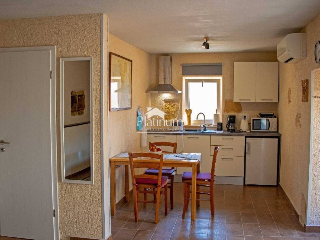 Two houses for sale, one for residential use and the other for tourist rental. A residential house measuring 102 m2 in size with a 403 m2 yard consists of a ground floor and two floors. The ground floor has a kitchen, living room, study and bathroom, and one bedroom on the first and second floors. The house has an antique feel that can also be excellent for tourist rental. The second house measuring 64 m2 in size consisting of a ground floor and an upper floor with a 185 m2 yard. Arranged with two apartments on each floor, the ground floor apartment is rented for tourist purposes, and the upper one needs to be finished. Real estate with potential and an excellent location. Info on 00385 91 924 9486