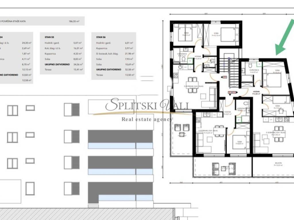 Prodaje se dvosoban stan ukupne površine 65 m smješten u mjestu Seget Donji, u neposrednoj blizini plaže i svega nekoliko minuta vožnje od centra Trogira. Stan se nalazi na prvom katu stambene zgrade, jugoistočne je orijentacije te se odlikuje funkcionalnim rasporedom koji obuhvaća dvije spavaće sobe, kupaonicu te dnevni boravak s kuhinjom i blagovaonicom s izlazom na prostrani balkon. Kroz cijeli stan provedeno je podno grijanje. Stanu pripada i jedno parkirno mjesto. Objekt se trenutno nalazi u fazi izvođenja fasade zgrade, a dovršetak i useljenje planirani su kroz nekoliko mjeseci. Udaljenost do Zračna luka Split iznosi približno deset minuta vožnje. Useljenje je planirano kroz nekoliko mjeseci. Nekretnina je pogodna za stanovanje, ali i kao investicija za turistički najam. U oglasu tlocrt stana označen je zelenom strelicom.