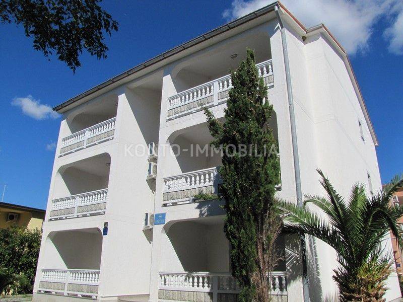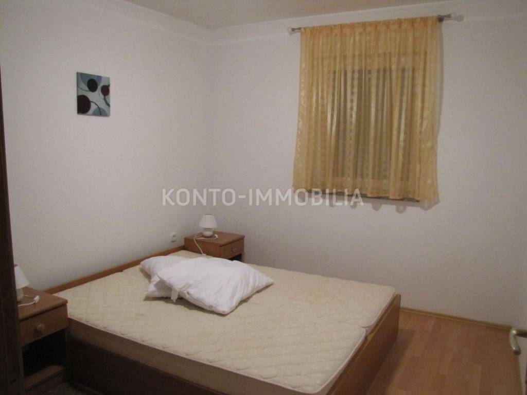 A pleasant and bright apartment, 2 bedrooms + living room, with a covered terrace and parking in the building's yard is available for long-term rent. The apartment is located on the 1st floor of a residential building, with a beautiful terrace overlooking the sea. The apartment consists of a kitchen with a dining room and living room, two bedrooms and a bathroom. Heating and cooling in the apartment is provided by air conditioning. It is rented fully furnished with appliances and equipment that are in the apartment. The building is in a great location, about 150 m from the sea and the same distance to the first supermarket and restaurant. Certainly a pleasant apartment for living throughout the year. Rent 700.00 EUR per month + overhead costs + 2 months' rent deposit.