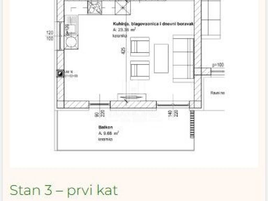 The first floor apartment with a total area of 67.41 sqm offers a functional layout and consists of a living room, kitchen with dining area, two bedrooms and a bathroom. The living room opens onto a beautiful terrace of almost 10 sqm, providing additional space for relaxation and socializing.