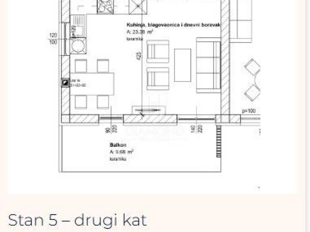 The second floor apartment with a total area of 67.41 sqm offers a functional layout and consists of a living room, kitchen with dining area, two bedrooms and a bathroom. The living room opens onto a beautiful terrace of almost 10 sqm, providing additional space for relaxation and socializing.
