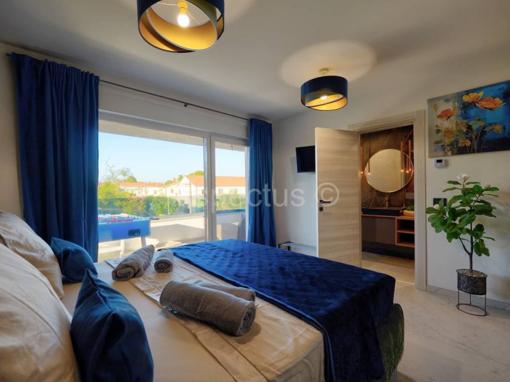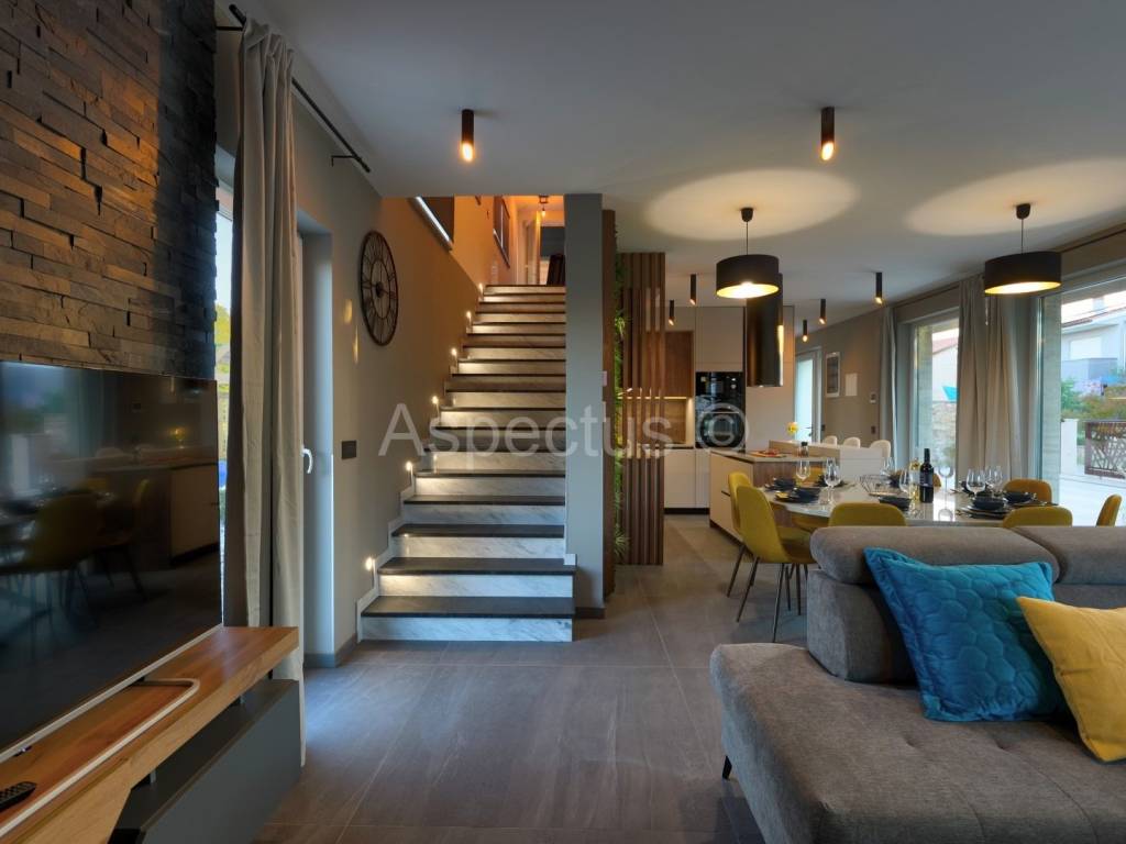 The house was built in 2025, spans two floors and offers a total living area of 200 m. It features four spacious bedrooms, four modern bathrooms, an open-plan kitchen with dining and living area, a laundry room, as well as a private wellness area with sauna and jacuzzi. The property is fully furnished with high-quality designer furniture and is ready for immediate use.