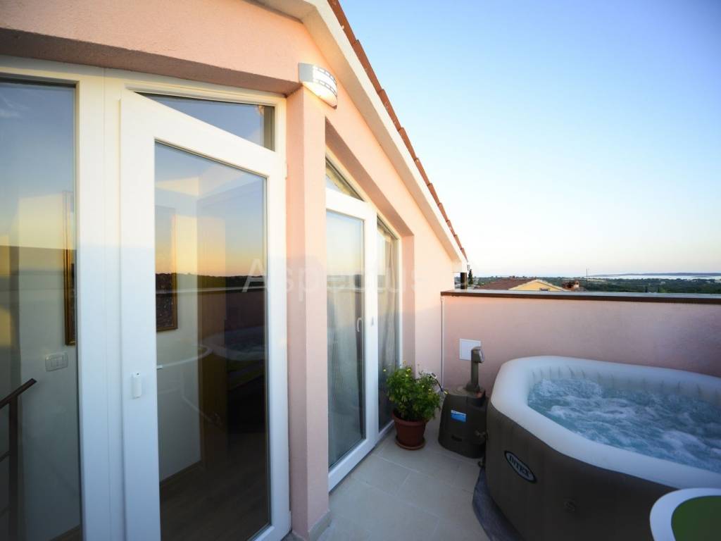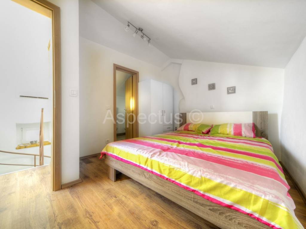 #sale, House in Ližnjan located in the center with panoramic sea views. A terraced house consisting of a ground floor with a separate one-bedroom apartment, while an external staircase leads to the first floor where there is a three-bedroom, three-bathroom apartment. In the attic there is a bedroom with bathroom and access to the terrace overlooking the sea, where there is a hydromassage whirlpool. The house also has a separate entrance to the other part of the house and is therefore ideal for anyone who wants to have their own living and rental space. In the second part of the house there is a house consisting of a kitchen and a dining room with a living room on the ground floor, on the first floor there is a bedroom with a bathroom and on the attic there is another bedroom with a terrace. Near the house there is a supermarket, a butcher shop and a bus stop. The house is a great and safe investment for year-round rental.