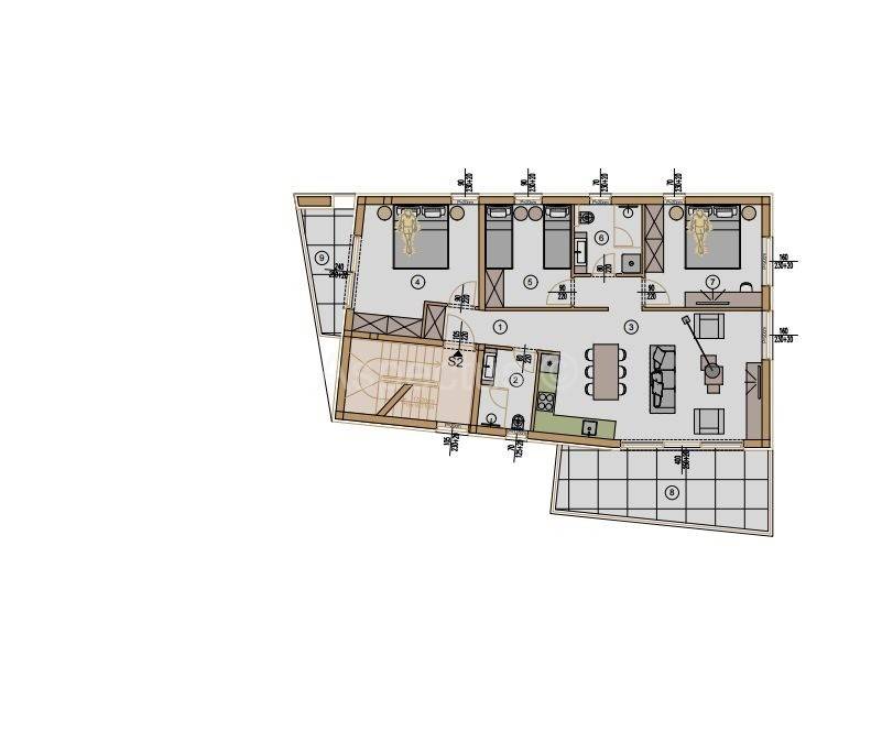The apartment is equipped with underfloor heating powered by a heat pump and air conditioning for maximum comfort throughout the year. The planned completion of construction is summer 2025. The apartment also includes a storage room on the ground floor of the building and a designated parking space.