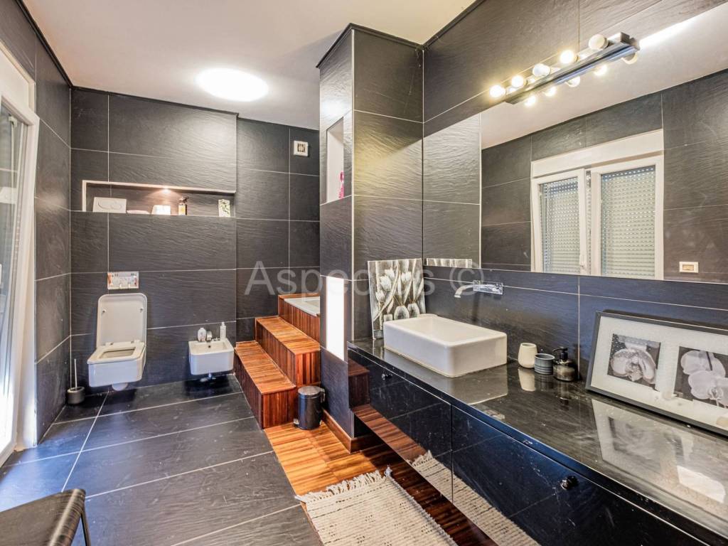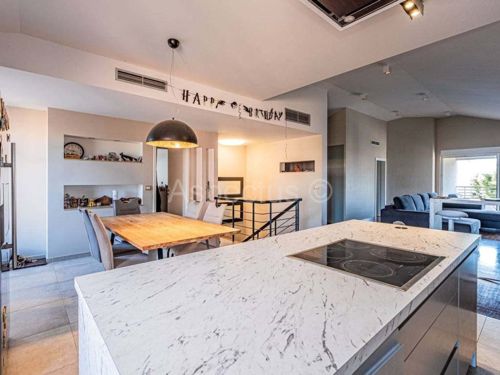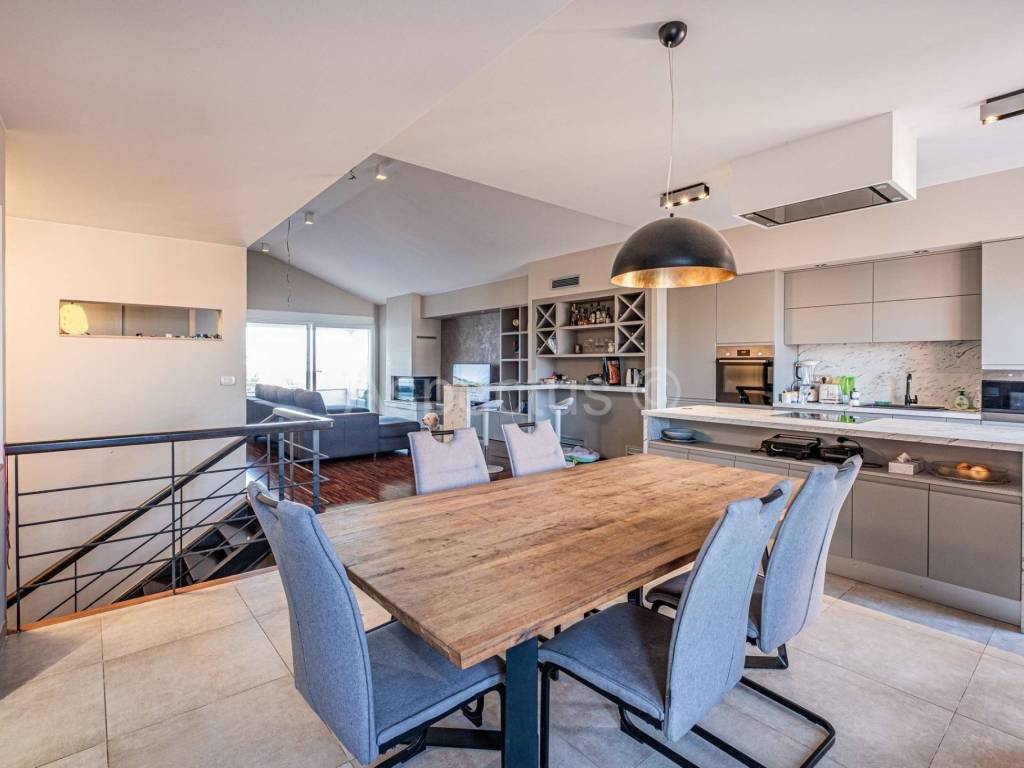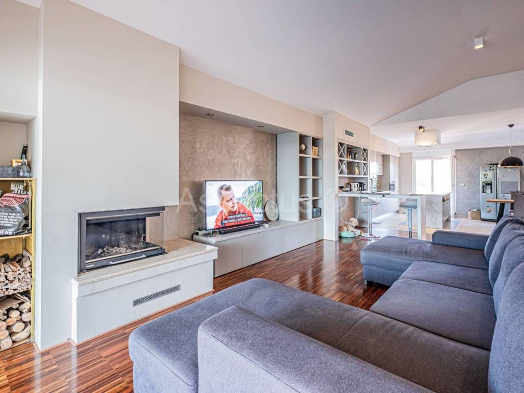 Luxurious two-story apartment located 1st row to the sea, i.e. only 300m from the beach. The apartment consists of the 1st and 2nd floors, and on the 1st floor, there is an entrance hall, a bedroom + bathroom, a large covered terrace, a bedroom + bathroom, a wardrobe, a laundry room, a night corridor, and a staircase that connects the 2nd floor of the apartment where there is a large living room, dining room and kitchen, children's room, toilet, covered terrace and a storage room of 7 m2 on the ground floor of the building with a total area of 200.57 m2. The apartment has 2 parking spaces in the courtyard of the building, which exclusively belong to the apartment.