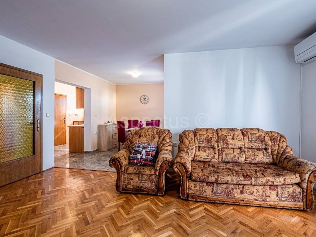 We are selling two one-story houses in Medulin, only 2 km from the beach. The total living area of one house is approx. 110 m2, while the living area of the second house is approx. 80 m2. Each house consists of a hallway, kitchen, pantry, dining room, living room, two bedrooms, bathroom and balcony. Also, each house has its own garden and the spacious garden has a green area, a romantic place to sit and a garage with 3 parking spaces.