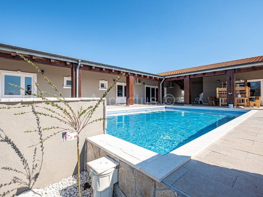 Attractive Detached Villa in an Idyllic Location Only 20 km from Pula and Rovinj! For sale is a modern and exceptionally appealing villa that meets the highest standards. With a spacious living area of 248.38 m, the villa impresses with its thoughtful design and high-quality features: