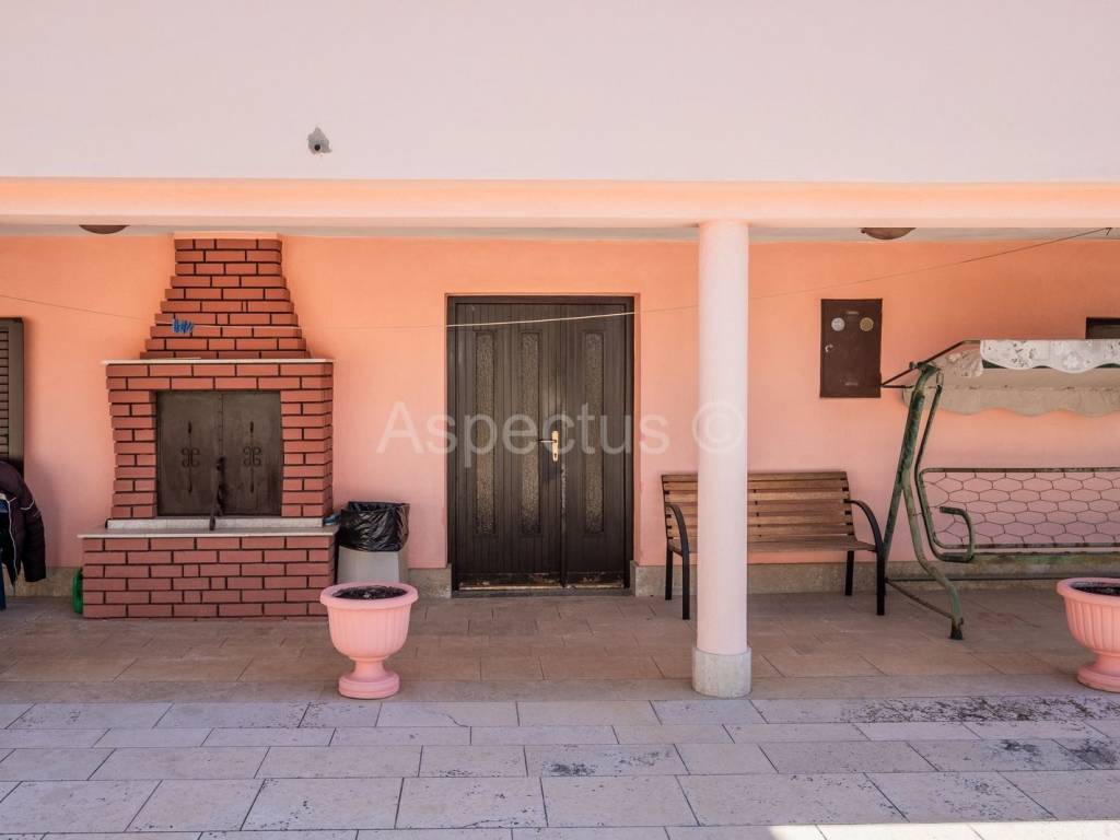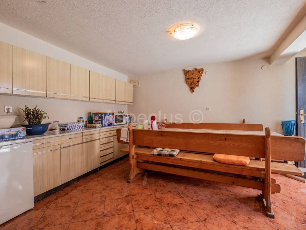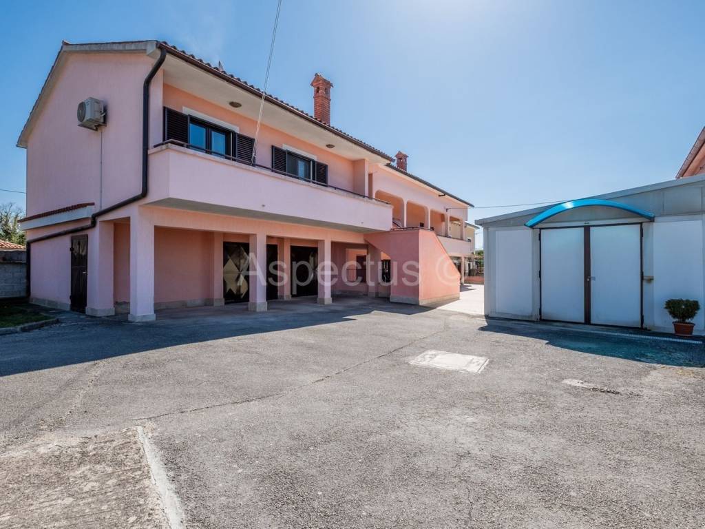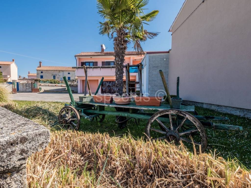 Semi-detached house located near Svetvinčent, total area 266m2 with 467m2 garden. Stone house built in 1943 and consists of a ground floor where there is a wine cellar, kitchen, dining room, bathroom, and on the 1st floor there are 3 bedrooms and an exit to the terrace with a well. The second house, built in 1986, has two large garages and a utility room on the ground floor, while an external staircase connects the house with a two-room apartment on the first floor, which consists of a large entrance terrace, entrance hall, two bedrooms, kitchen, dining room, living room with exit to a large terrace, bathroom and toilet. In the yard there is a separate room that once served as a chamber for various domestic products, while in the yard there is also a separate building where there is a tavern with a fireplace for pleasant gatherings. Certainly, both houses have a great potential for renting out for tourist purposes, because their location, distanced from the city crowd and urbanity, provides peace for the soul. The houses are separated by a separate entrance and offer potential buyers the opportunity to buy one house in 1/2 part of the ownership, because the ideal purchase of this property can be used by two brothers, two friends, two godfathers, a brother and sister to spend time together. There is a supermarket and a bus station in the immediate vicinity of the house.