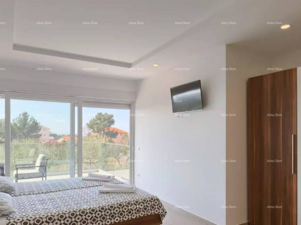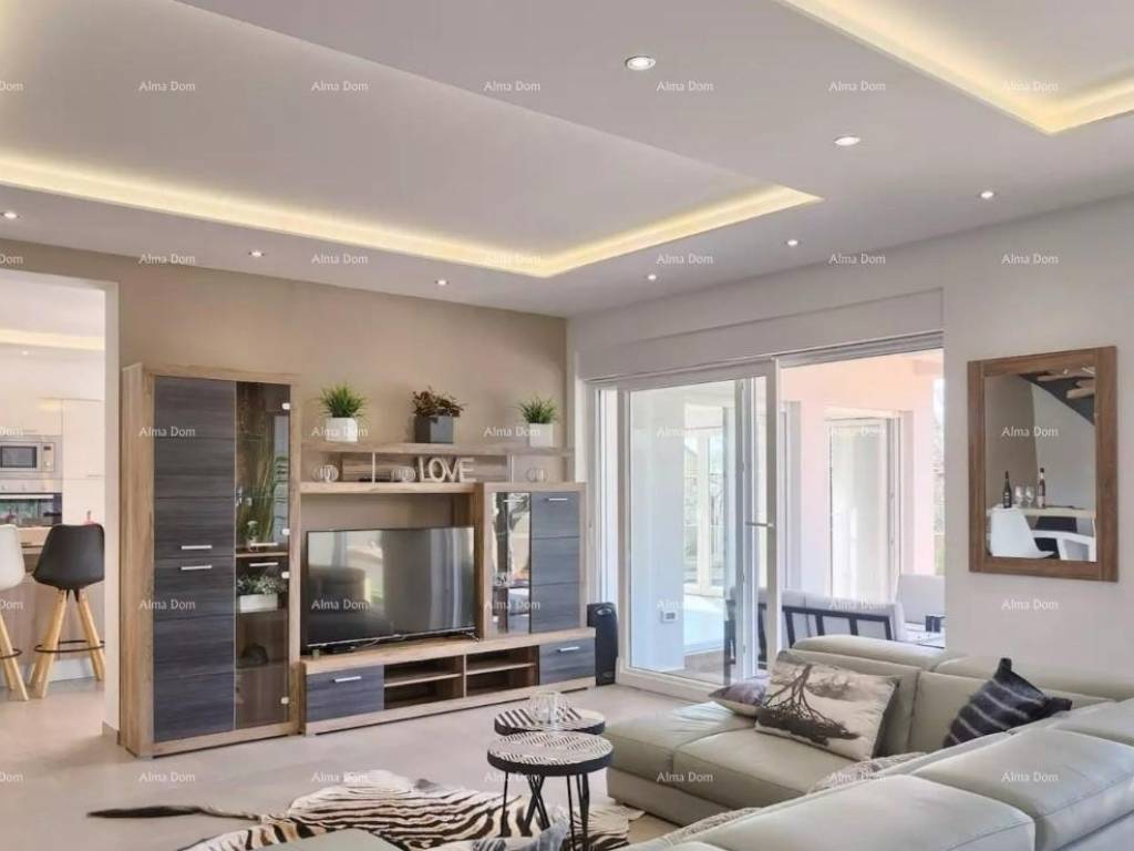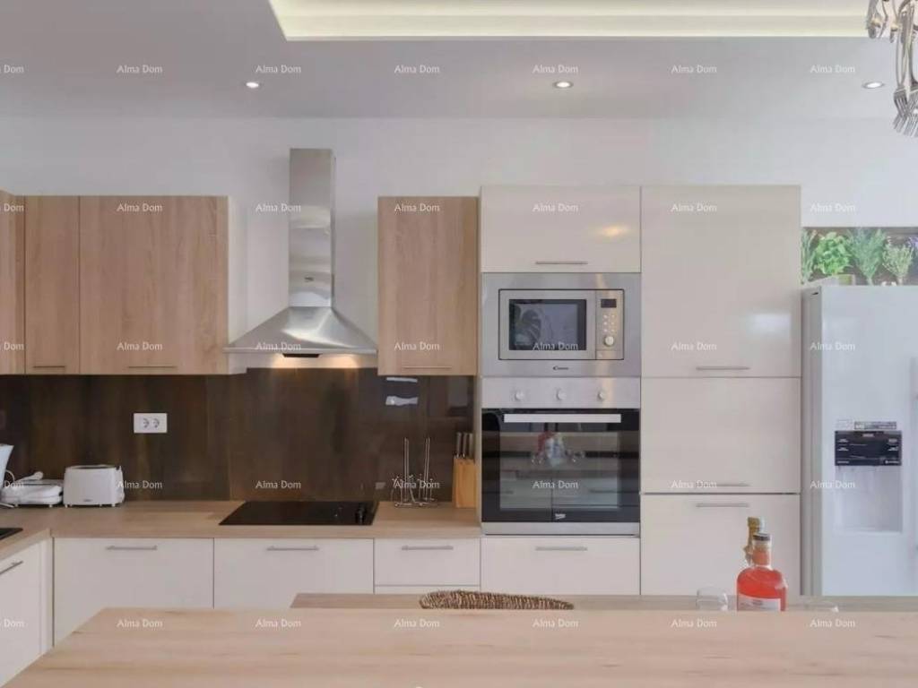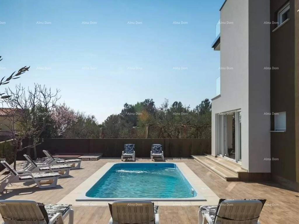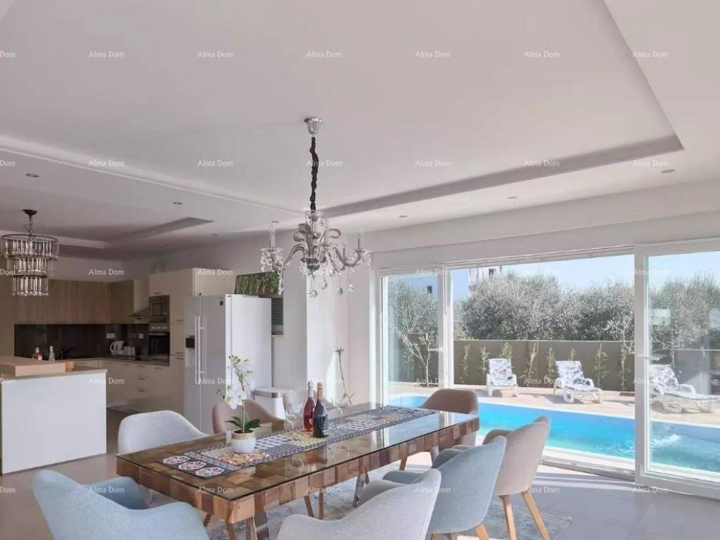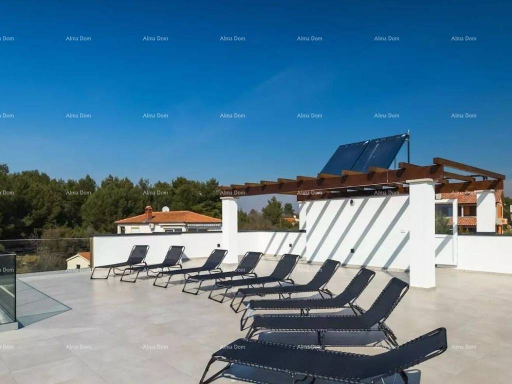 The town of Fažana is located on the southwestern coast of the Istrian peninsula, overlooking the sea and the beautiful islands of the Brijuni archipelago. It is only 8 km from Pula. Close to the ancient ruins of Pula, Fažana, and Valbandon. The property is situated in a quiet private village just 700m from the sea and only 700m from the center of Fažana and its beautiful promenade. It spans two floors, with a total living area of 300 square meters. On the ground floor, there is a spacious and beautifully decorated living room connected to a modern kitchen, dining area, and bathroom. High-quality materials, plenty of natural light, and unique chandeliers make this part of the house special and inviting. On the first floor, there are four bedrooms, each with its own bathroom and a spacious terrace offering uninterrupted views of the sea and Brijuni. A unique feature of this property is the rooftop terrace, which is home to 10 sun loungers, with breathtaking views! The 223 m plot includes a private pool, sunbathing terrace, and greenery with outdoor tables and benches. A rich area, parking for several cars. An ideal investment for a peaceful family life or as a tourist rental investment with a solid return on investment!