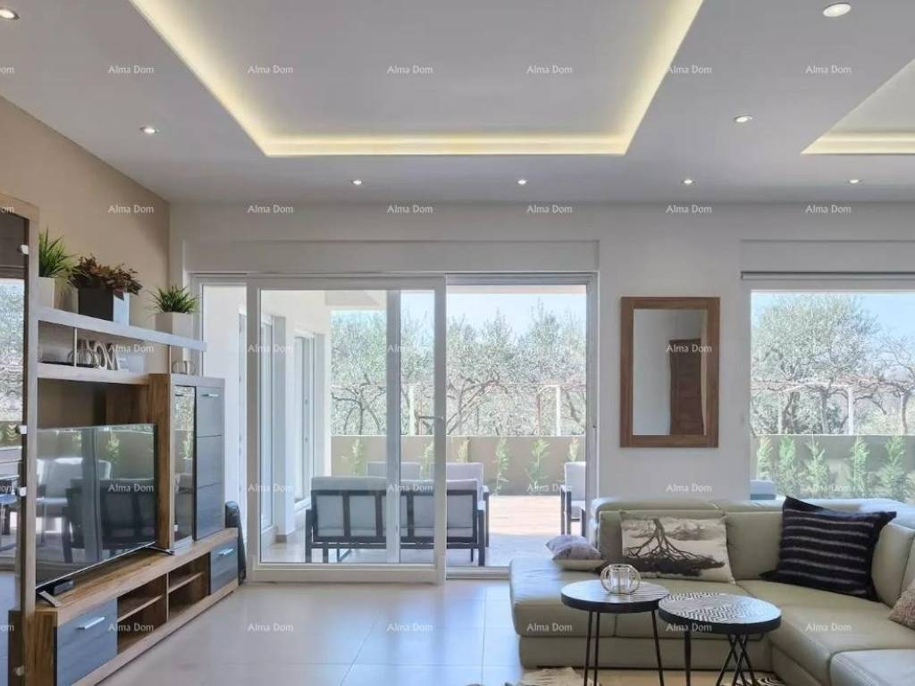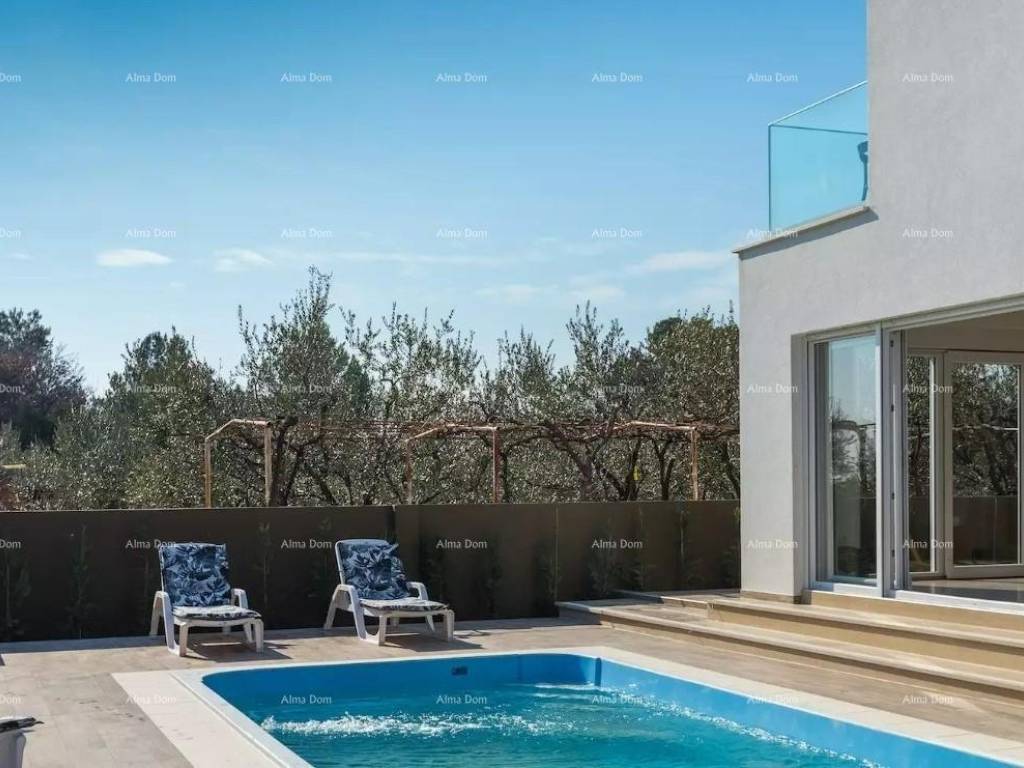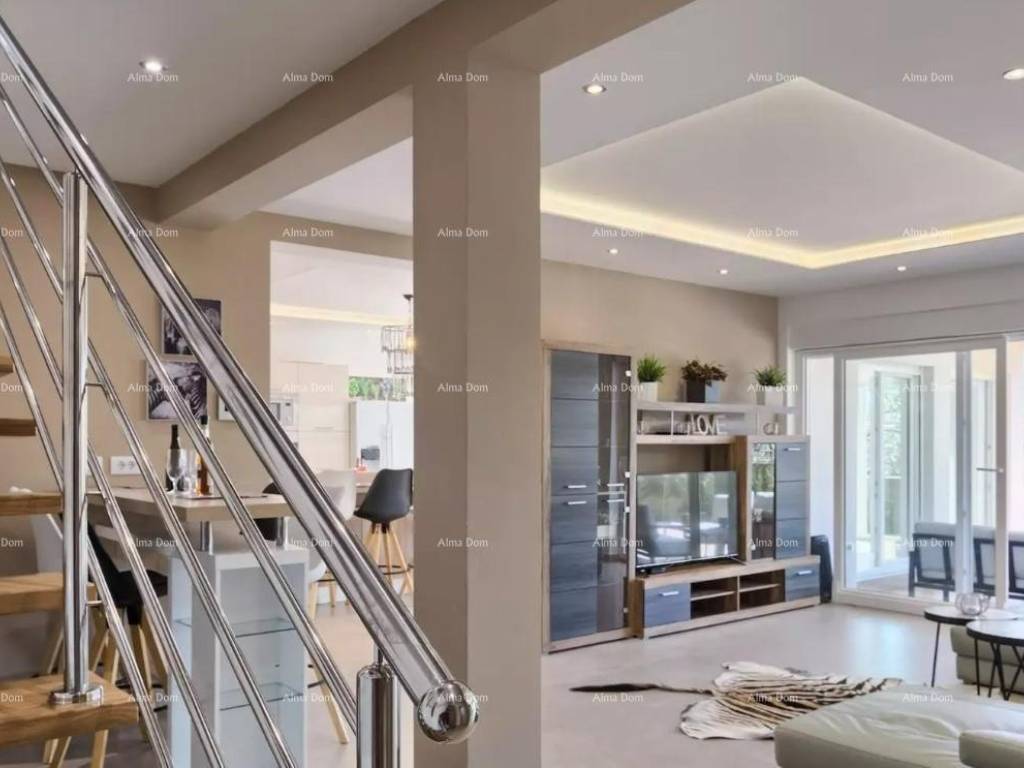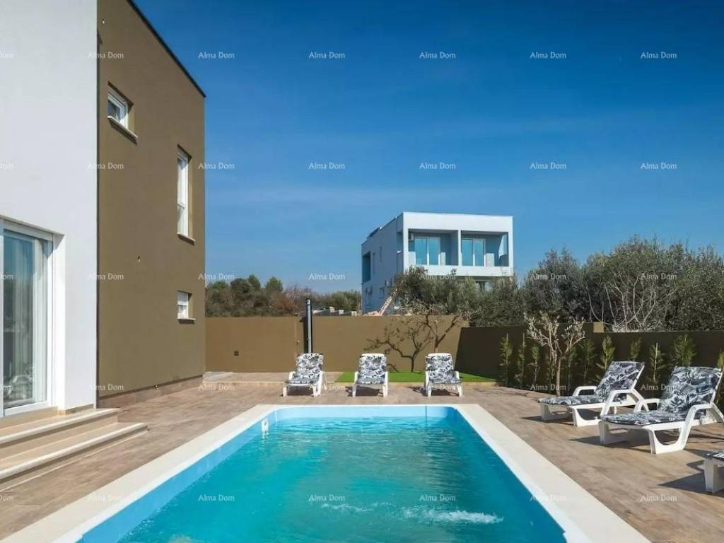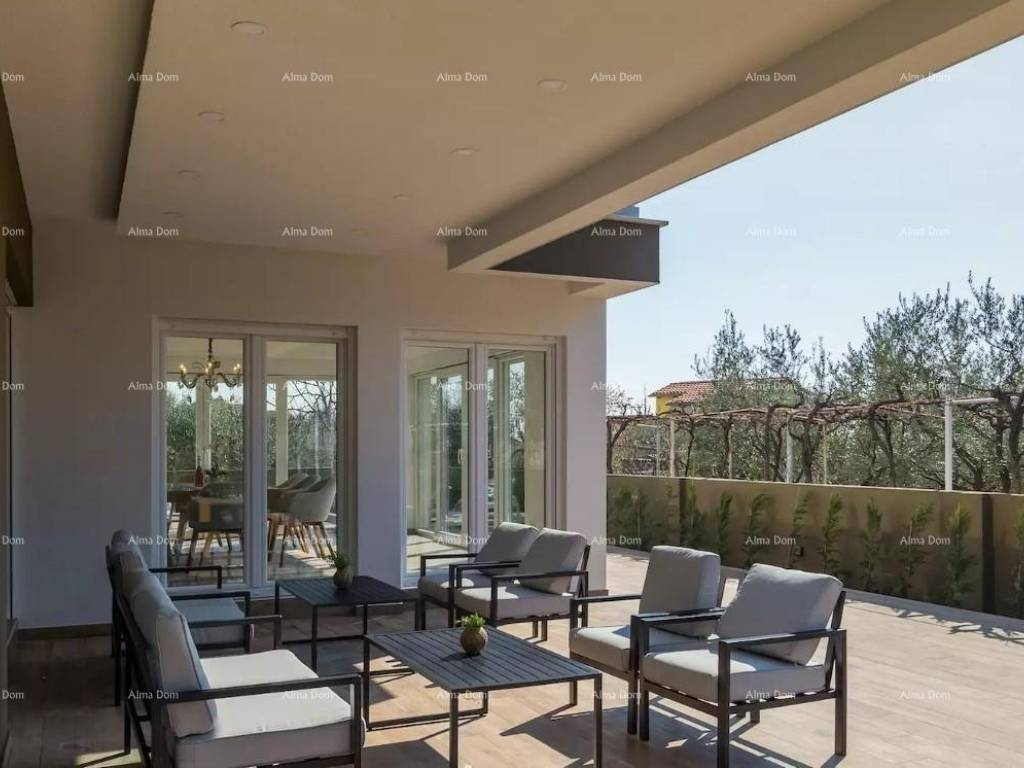 The town of Fažana is located on the southwestern coast of the Istrian peninsula, overlooking the sea and the beautiful islands of the Brijuni archipelago. It is only 8 km from Pula. Close to the ancient ruins of Pula, Fažana, and Valbandon. The property is situated in a quiet private village just 700m from the sea and only 700m from the center of Fažana and its beautiful promenade. It spans two floors, with a total living area of 300 square meters. On the ground floor, there is a spacious and beautifully decorated living room connected to a modern kitchen, dining area, and bathroom. High-quality materials, plenty of natural light, and unique chandeliers make this part of the house special and inviting. On the first floor, there are four bedrooms, each with its own bathroom and a spacious terrace offering uninterrupted views of the sea and Brijuni. A unique feature of this property is the rooftop terrace, which is home to 10 sun loungers, with breathtaking views! The 223 m plot includes a private pool, sunbathing terrace, and greenery with outdoor tables and benches. A rich area, parking for several cars. An ideal investment for a peaceful family life or as a tourist rental investment with a solid return on investment!