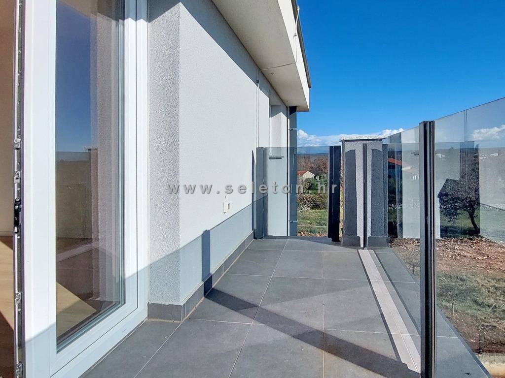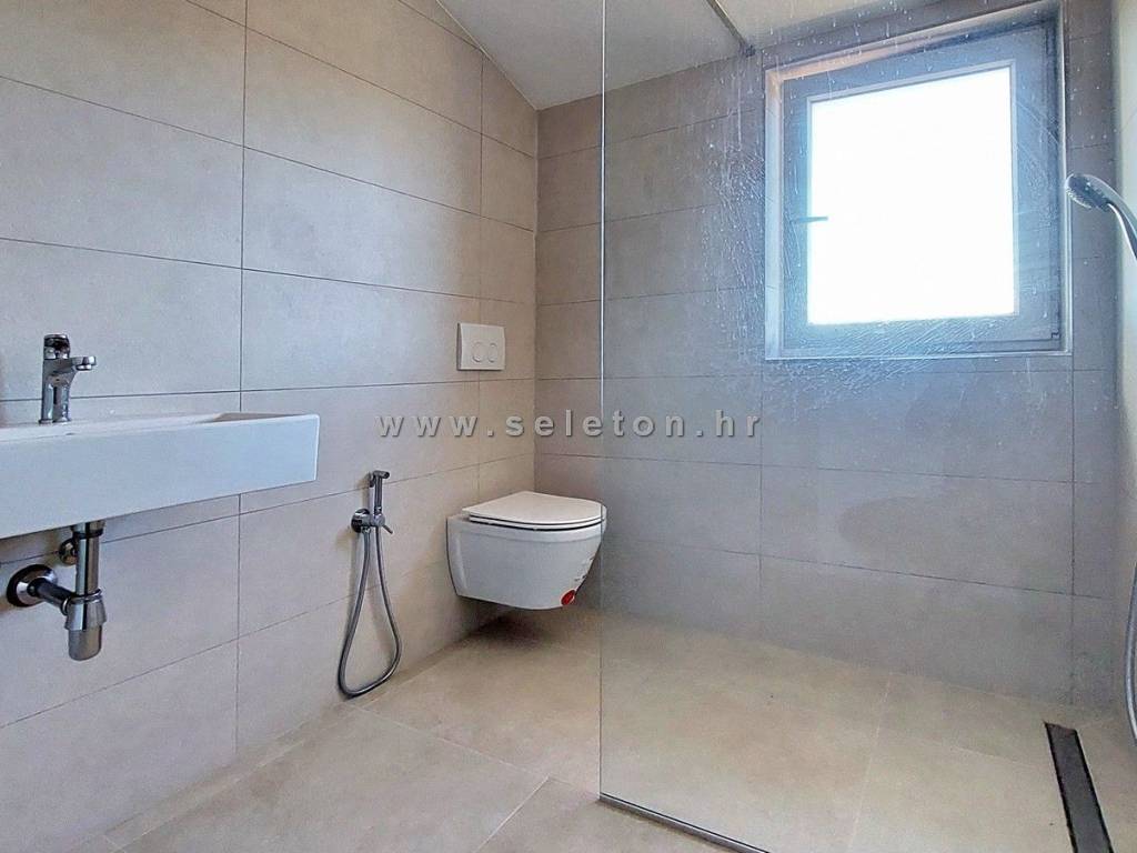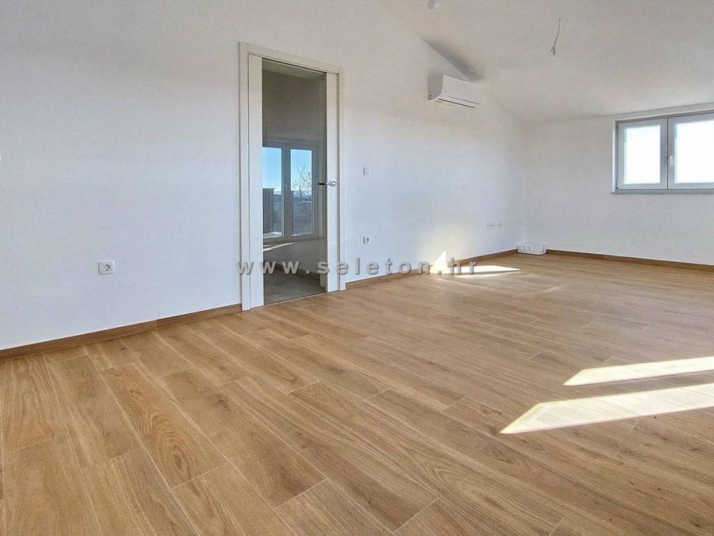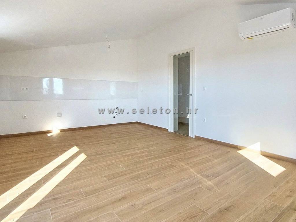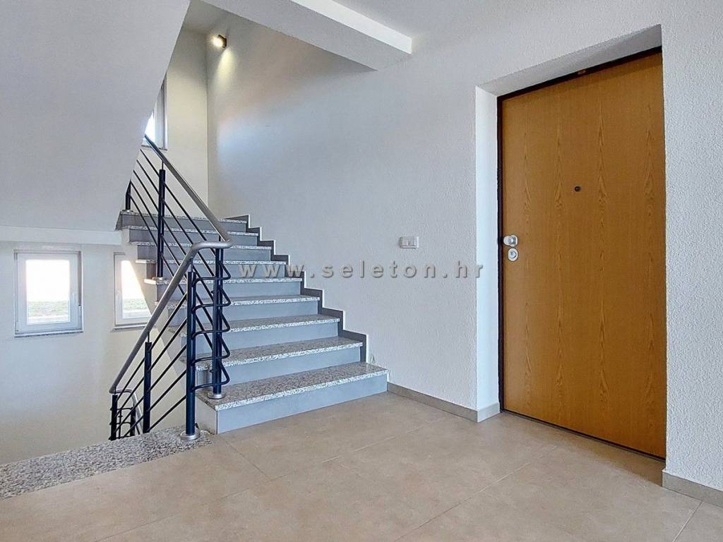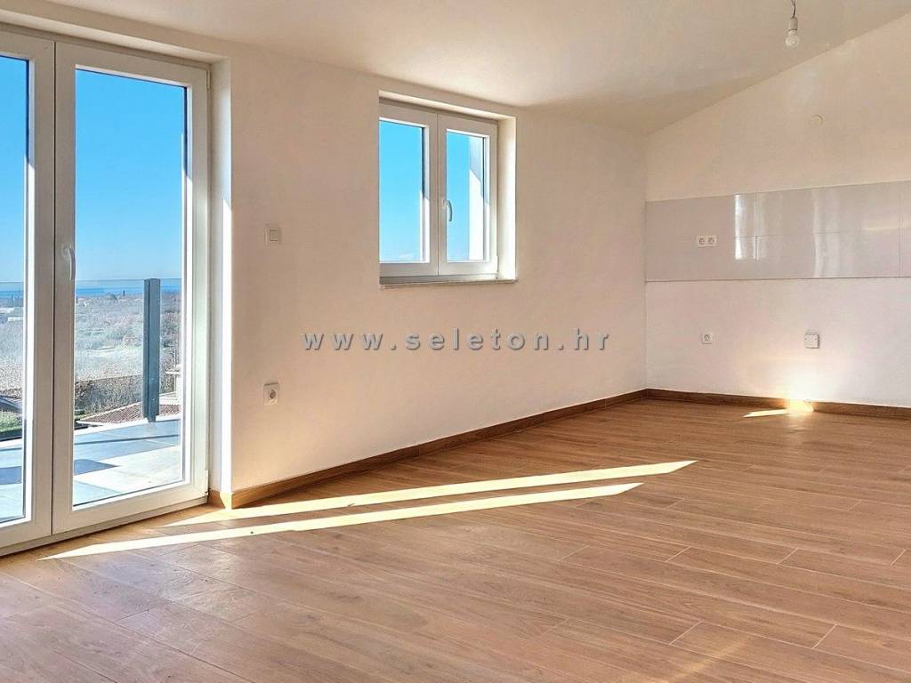 New apartment for sale of 82 m2, consists of kitchen, living room and dining room, hallway, 3 bedrooms, bathroom, toilet and 2 terraces. The apartment is located on the 3. floor, has 4 air conditioners, security door, underfloor heating in the bathroom, it has one storage room in the basement of the building of about 6 m2 and two parking spaces in front of the building. The apartment is located about 7 km from Porec and the sea, close to shops, schools and kindergartens.