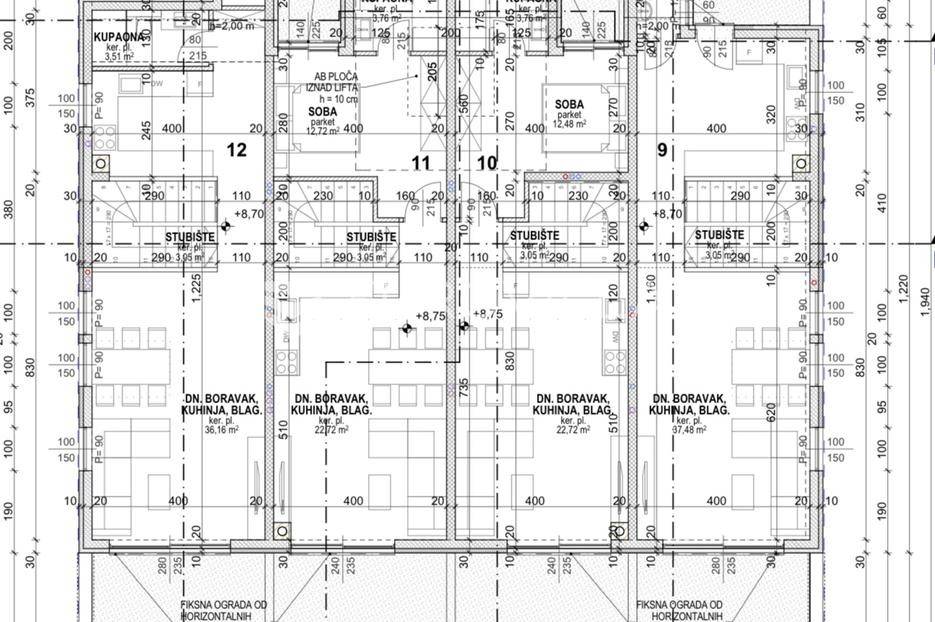 Predstavljamo Vam projekt vrhunske novogradnje u poznatom turističkom odredištu na otoku Pagu, Povljani. Projekt se sastoji od tri moderno dizajnirane zgrade. U početnoj fazi završena je zgrada 1, te je krenula izgradnja zgrade 2. Zgrade se nalaze na samom rubu građevinskog pojasa, te su sa svoje zapadne strane omeđene borovom šumom, što osigurava visoku razinu privatnosti. S druge strane, od poznate plaže Dubrovnik su udaljene svega 250 metara. U istom radijusu možemo pronaći i ostale sadržaje koji su potrebni za kvalitetan život ili odmor.STAN S11 - DRUGI KAT - DVOETAŽNI - 90,31m2Stan S11 nalazi se na 2. katu i potkrovlju zgrade 2 te je ukupne neto korisne površine 90,31m2. Raspoređen je na dvije etaže. Na 1. etaži se nalaze spavaća sobe (15,04m2), potpuno opremljena kupaonica (4,35m2), WC (3,19m2), hodnik (3,52m2) te natkriveni balkon s kojeg se pruža predivan pogled na more (15,84m2). Unutarnje stubište (5,80m2) nas vodi na 2. etažu na kojoj se nalazi prostrani otvoreni prostor kuhinje, blagovaonice i dnevnog boravka (22,73m2), druga spavaća soba (12,72m2), opremljena kupaonica (3,75m2) te terasa s pogledom na more (14,40m2). Stanu uz to pripada i ostava u podrumu zgrade te jedno vanjsko parkirno mjesto. Također, postoji mogućnost i kupnje garažnog mjesta s automatskim vratima :G1 (20,10m2) 38.190,00€G2 (37,29m2) 69.000,00€G3 (24,60m2) 46.740,00€G4 (44,55m2) 82.500,00€PDV JE UKLJUČEN U CIJENU TE KUPAC NE PLAĆA POREZ NA PROMET NEKRETNINAMA!Očekivano useljenje: 05/2027Od opreme i materijala izdvajamo:Termoizolacija od mineralne (kamene) vune debljine 10 cm i završnim DEMIT slojemPregradni zidovi od pune opekeMulti split invertni sustav klimatizacijePVC low-e dvoslojna stolarija s ugrađenim komarnicima i aluminijskim roletama na električno upravljanjeProtuprovalna i protupožarna vrataLift (luksuzna kabina)Vanjska parkirna mjesta s utičnicomI još mnogo toga..Povljana je mirno priobalno mjesto smješteno na južnom dijelu otoka Paga. Poznata je po dugim pješčanim plažama, čistom moru i opuštenom mediteranskom ugođaju. Idealna je destinacija za obiteljski odmor i život u mirnom okruženju.Za dodatne informacije i dogovor oko razgledavanja nekretnine, slobodno nas kontaktirajte... Više na eurovilla.hr, ID: 147456