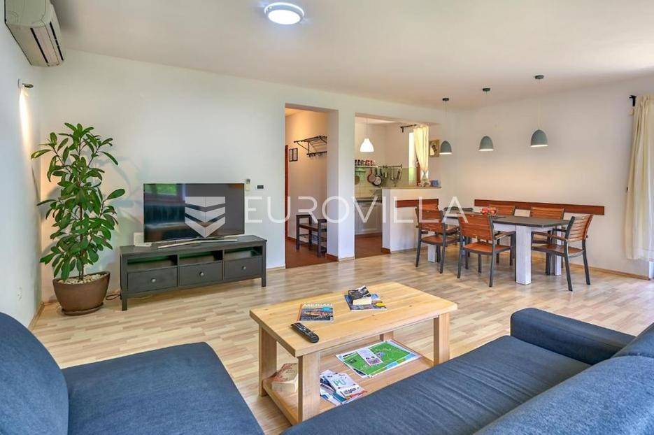 Krnica je šarmantno istarsko naselje koje osvaja netaknutom prirodom, mirom i pravim mediteranskim ugođajem. Smještena u blizini Pule i prekrasnih plaža istočne obale Istre, pruža idealnu ravnotežu između privatnosti i dostupnosti svih potrebnih sadržaja.U tom ugodnom okruženju smjestila se kuća koja predstavlja odličnu priliku za život ili investiciju. Spoj dobre lokacije, funkcionalnog rasporeda i intime čini je pogodnom kako za stalni boravak, tako i za turističko iznajmljivanje.Stambeni prostor od 120 m² raspoređen je na dvije etaže. U prizemlju se nalazi prostrani dnevni dio otvorenog koncepta koji povezuje kuhinju, blagovaonicu i boravak, uz kupaonicu i praktičan prostor za pohranu. Na katu su smještene tri komforne spavaće sobe i dodatna kupaonica, što omogućuje udoban boravak obitelji ili gostiju.Interijer je osmišljen tako da pruža toplinu i funkcionalnost, s naglaskom na svakodnevnu udobnost i ugodan ambijent, bilo da se koristi za stanovanje ili odmor.Okućnica je ograđena i osigurava potpunu privatnost, a posebnu vrijednost daje privatni bazen sa sunčalištem te dovoljno prostora za opuštanje i druženje na otvorenom.Ova nekretnina savršen je izbor za one koji žele mir i prirodu, a pritom biti nadomak mora i grada. Može biti ugodan obiteljski dom, kuća za odmor ili isplativa investicija na atraktivnoj lokaciji u Istri.Za sva dodatna pitanja ili dogovor oko razgledavanja, stojimo vam na raspolaganju.... Više na eurovilla.hr, ID: 183282