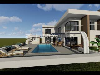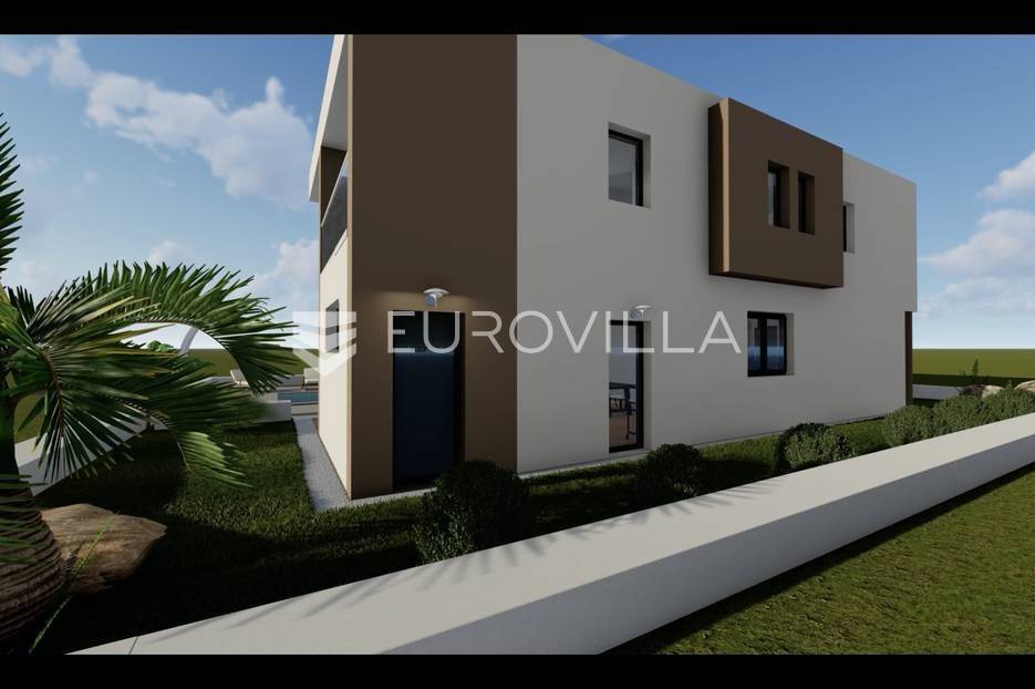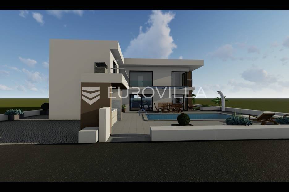 Moderna vila s bazenom i hortikuluralno uređenom okućnicom u izgradnji, udaljena 200 metara od mora i pješčane plaže u malom turističkom mjestu Sabunike.Vila ima neto korisnu površinu 188 m2 i gradi na zemljištu površine 450 m2.U prizemlju će biti smješteni open space kuhinja s blagovaonicom i dnevnim boravkom, dvije spavaće sobe i kupaonica. Velike staklene stijene omogućuju pregršt dnevne svjetlosti. Iz dnevnog boravka omogućen je izlaz na hortikulturalno uređen prostor s bazenom (8m x 3,5m), vanjskim tušem i ljetnom kuhinjom, idealan za druženja, ispijanje jutarnje kave ili večernjih koktela. U prizemlju se također nalazi spremište i stubište koje vodi na prvi kat vile, na kojem se nalaze tri spavaće sobe s vlastitom kupaonicom i izlazom na terasu.OPREMA - Termo-izo fasada, protuprovalna vrata, ALU-PVC stolarija, grijanje će biti centralno, a svaka soba ima vlastiti klima uređaj.Okoliš će biti uređen zelenilom i označena dva do do tri parkirna mjesta.LOKACIJA - Sabunike su atraktivno turističko mjesto udaljeno 16 kilometara od Zadra.Ovo mjesto krase brojne pješčane plaže i uvale i vrlo je pogodno mjesto za obitelji s malom djecom.Za one željne rekreacije i sporta uz plaže postoje razni sportski i zabavni sadržaji.U blizini se nalazi prekrasna pješčana Kraljičina plaža i najveći lokalitet ljekovitog blata u Hrvatskoj.Planiran završetak izgradnje je početak 2024.godine.Ostale informacije na upit.... Više na eurovilla.hr, ID: 188444