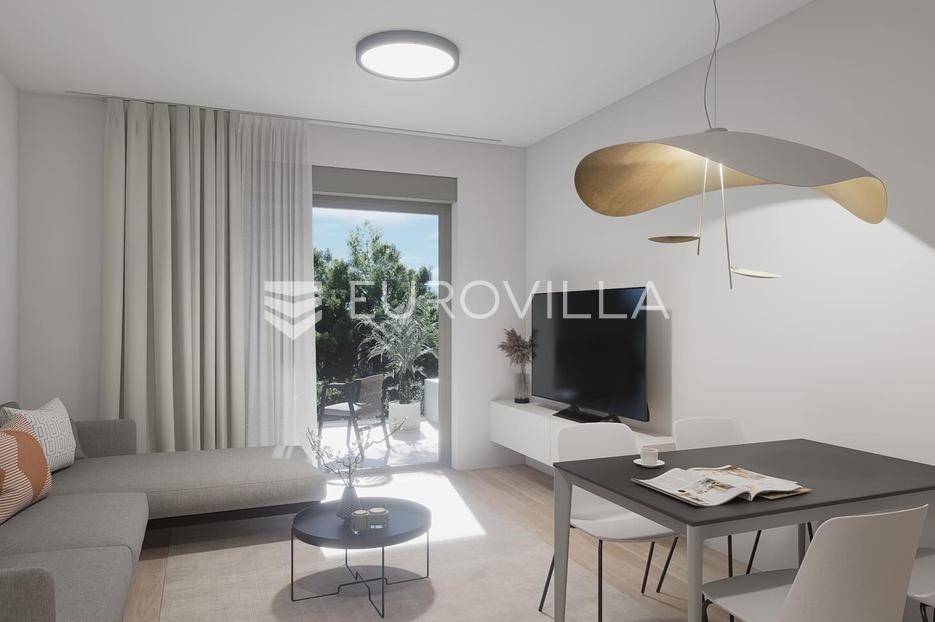 Omiš, dvosoban stan u modernoj stambeno-poslovnoj zgradi s predivnim pogledom na more i grad Omiš.STAN S8 nalazi se na trećem katu zgrade i ima ukupno 57,75 m2 zatvorene površine. Sastoji se od ulaznog prostora, dvije spavaće sobe, hodnika, kupaonice, dodatnog WC-a, dnevnog boravka i kuhinje s blagovaonicom. Iz dnevnog boravka i obje sobe izlazi se na natkrivenu terasu površine 10,65 m2 s južnom orijentacijom koja osigurava mnoštvo dnevnog svjetla i prekrasan panoramski pogled na more.Uz stan moguća je i kupnja privatne garaže ukupne površine 16,56 m2 po cijeni od 22 000, 00 EUR-a, te vanjskog parkrinog mjesta površine 12,50 m2 po cijeni od 17 000, 00 EUR-a.Oprema: podno grijanje u kupaonicama, klimatizirana svaka prostorija, ALU stolarija, protuprovalna ulazna vrata, vrhunski parket, keramika i sanitarna oprema...Zgrada se nalazi na mirnoj lokaciji tek dvije minute vožnje od centra grada Omiša, okružena je zelenilom i nudi predivan pogled na more. Najbliža plaža je udaljena samo 200 metara zračne linije.Useljenje je predviđeno u prvoj polovici 2027. godine.Za sve ostale informacije stojimo Vam na raspolaganju.... Više na eurovilla.hr, ID: 227369