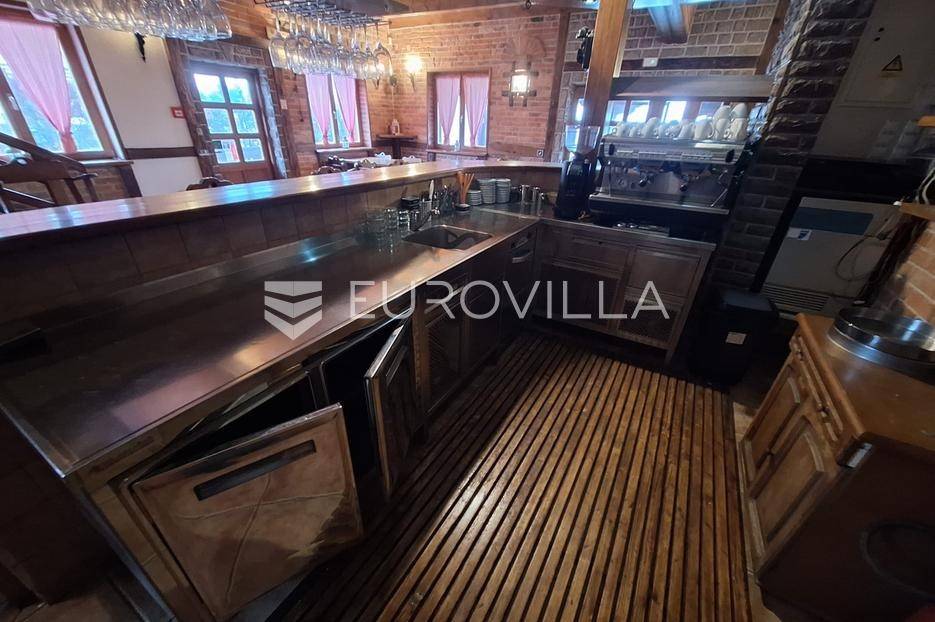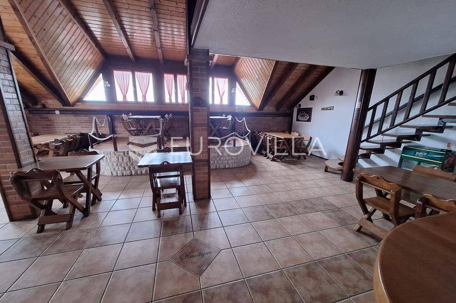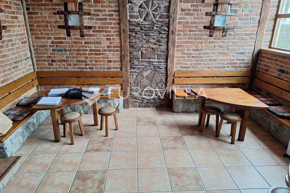Karlovac, poslovni prostor, restoran 300 m2 na odličnoj lokaciji sa svim inventarom. Nalazi se na parceli 1082 m2.Novije gradnje, rustikalno uređen. Podno grijanje na drva, priključak za plin doveden do objekta, drvena stolarija, podne obloge keramika, krovni pokrov crijep, nova fasada.3 etaže. Sastoji se od 3 prostorije za posluživanje, kuhinje, spremišta, 4 sanitarna čvora, svlačionice s tušem, balkona, nenatkrivene i natkrivene terase.Ispred objekta parking za 40 automobila i dječje igralište.Dobra prometna povezanost i blizina centra grada.Za sva ostala pitanja stojim na raspolaganju.... Više na eurovilla.hr, ID: 238490