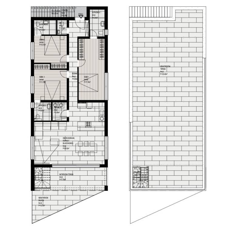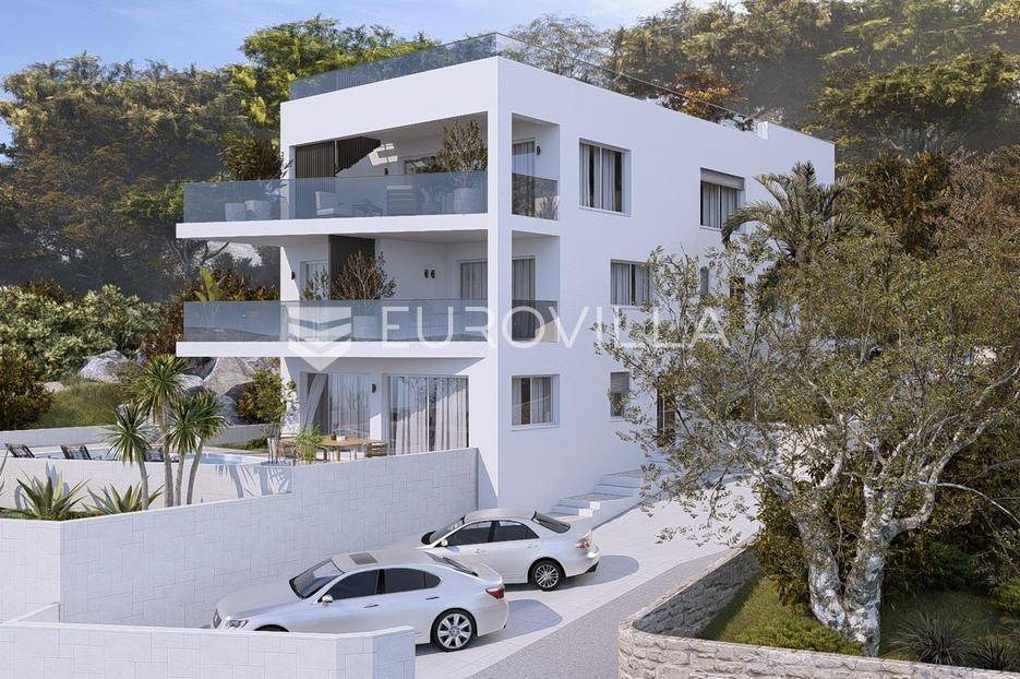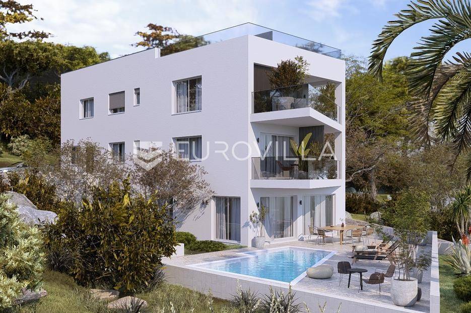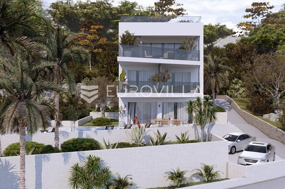 Čiovo, Okrug Gornji, luksuzan trosoban penthouse s krovnom terasom i nevjerojatnim pogledom na more, smješten na samo nekoliko koraka od plaže - u prvom redu do mora.Stambeni dio je podjeljen na hodnik, tri spavaće sobe s pripadajućim kupaonicama, wc, ostavu, te komforan dnevni prostor ( kuhinje s blagovaonicom i dnevnog boravka ) s izlazom na djelomično natkriveni balkon ( 30, 56 m2 ) .Površina unutarnjeg stambenog dijela iznosi 104 m2.Stan je unutanrim i vanjskim stubištem povezan s krovnom terasom površine 123, 45 m2.U cijenu su uključena dva vanjska parkirna mjesta, a pristup plaži će biti omogućen privatnim stepenicama.Početak gradnja se očekuje u rujnu 2025. Godine, a ukoliko sve bude po planu, završetak se očekuje u prosincu 2026. Godine.Za sve dodatne informacije, stojimo vam na raspolaganju.... Više na eurovilla.hr, ID: 248153