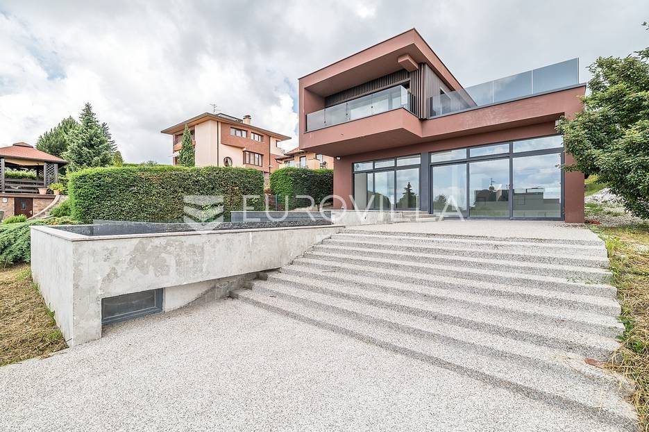 Šestine, mirna ulica sa prekrasnim obiteljskim vilama.Vila površine 400m2 smještena na zemljištu 1530m2 (18x80m). Podno grijanje, dizalica topline, podne obloge terazzo, klimatizirane sve prostorije... Postoji priprema za ugradnju solarnih panela.Razvedena u dvije etaže.Prizemlje: ulazni hall, gostinjska soba s kupaonicom, prostran dnevni boravak, kuhinja s blagovaonicom, terasa i bazen, vrt, vešeraj, soba za domaćicu sa zasebnim ulazom.Kat: master spavaći dio sa garderobom i kupaonicom te izlazom na terasu te prostran dječji spavaći apartman koji je moguće podijeliti na 2 spavaće sobe i kupaonicu.Iz vile se pruža prekrasan pogled na zelenilo. Izuzetno mirna lokacija, u blizini škole i vrtića te javnog prijevoza. Uvučena od glavne ceste što pruža potpunu privatnost. Ostale informacije na upit.... Više na eurovilla.hr, ID: 248701