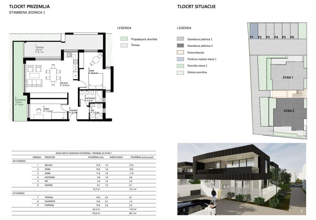 Varaždin, Koprivnička, NOVOGRADNJA, trosoban stan neto površine 86,70 m².Stan se nalazi u prizemlju, a sastoji od kuhinje, blagovaonice i dnevnog boravka u open space konceptu s izlazom na terasu i dvorište, hodnika, dvije spavaće sobe, kupaonice i zasebnog WC-a.Grijanje je riješeno putem Daikin dizalice topline uz podno grijanje u cijelom stanu, a u kupaonici su ugrađene električne grijane ljestve.Troslojna PVC stolarija s aluminijskim roletama te aluminijske klizne stijene sa žaluzinama. Ulazna vrata su protuprovalna i protupožarna. Podne obloge su keramika i parket, uz mogućnost odabira dekora.Stan je opremljen klima uređajima, sanitarnom opremom Hans Grohe te ugradbenim vodokotlićem Geberit.Za dodatne informacije i dogovor oko razgledavanja, slobodno nas kontaktirajte.... Više na eurovilla.hr, ID: 257082