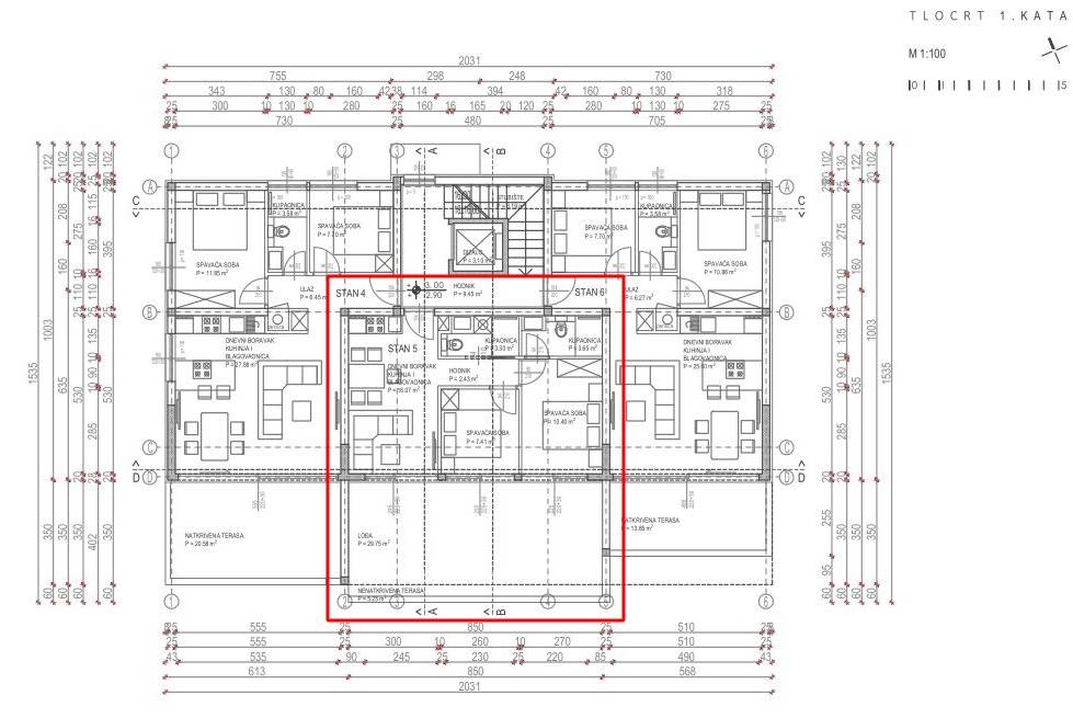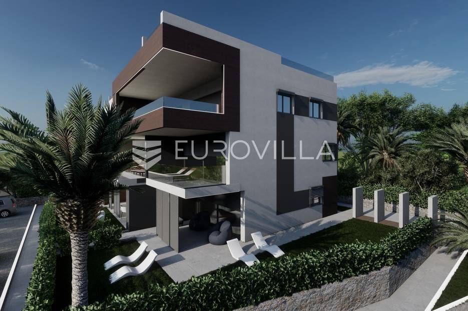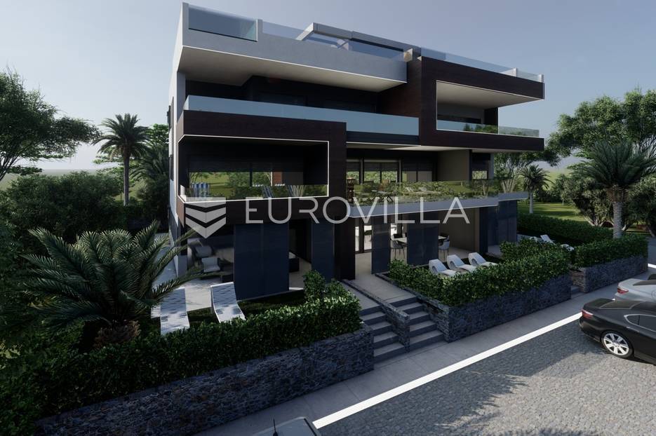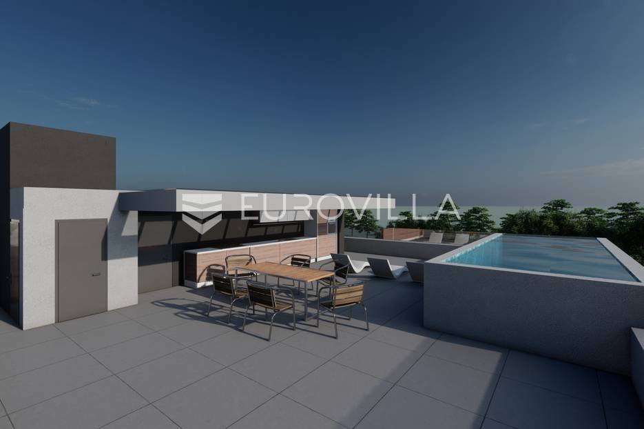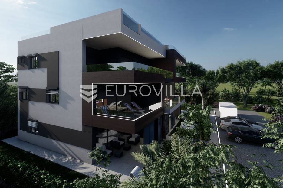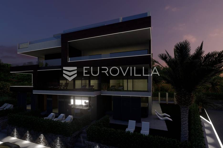 Zaton, NOVOGRADNJA, luksuzna stambena zgrada s ukupno osam stanova (šest apartmana i dva penthausa) na idealnoj lokaciji samo 20 metara od mora s otvorenim pogledom i 700 metara od centra grada. Svakom od stanova pripadaju po dva vanjska parkirna mjesta, apartmanima u prizemlju vrtovi, a penthouseima krovne terase s pergolama i grijanim bazenima. Useljenje jesen 2023. godine.Stan S5 - dvosoban stan na prvom katu zatvorene površine 43,26 m2, terasa 35,00 m2 i dva parkirna mjesta 28,60 m2. Ukupne obračunske površine 72,72m2. Sastoji se od ulaznog hodnika, dnevnog boravka s blagovaonicom i kuhinjom otvorenog tlocrta s izlazom na terasu, dvije spavaće sobe i dvije kupaonice.Prilikom gradnje koristi se oprema i materijali po najvećim standardima. Aluminijska stolarija s elektro roletama i žaluzinama na staklenim stijenama (Schüco), dizalo (Schindler), podno grijanje dizalicom topline i klima uređaji (Mitsubishi), prvoklasna keramika velikog profila, parket više klase, protuprovalna vrata…Zaton je malo turističko mjesto idealno za odmor i opuštanje. Smješten je između dvaju povijesnih gradova, Nina (2km) i Zadra (12km). Predstavlja jedinstveni spoj dalmatinske arhitekture, ugodne mediteranske klime, očuvane prirode, bogate kulturno povijesne baštine, te živahne turističke svakodnevice.Sve ostale informacije na upit.... Više na eurovilla.hr, ID: 370967