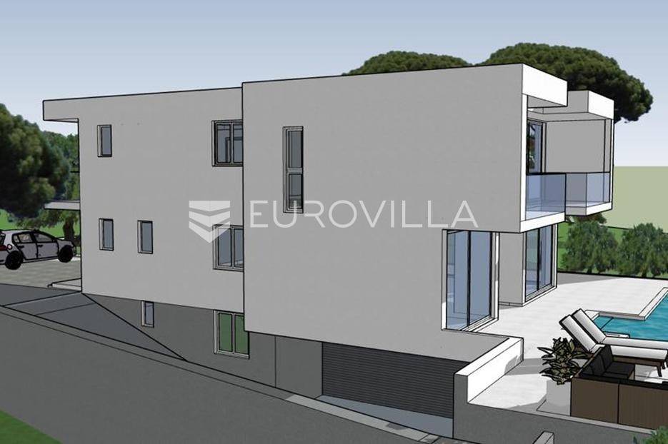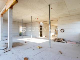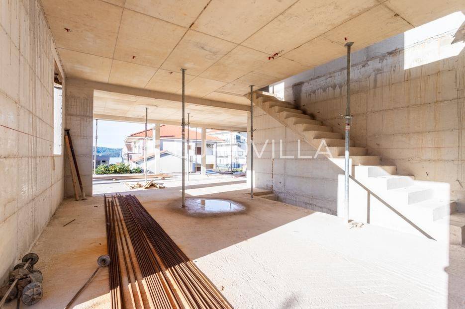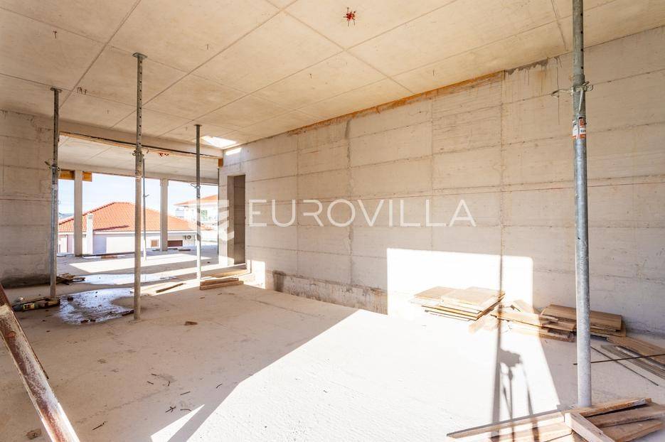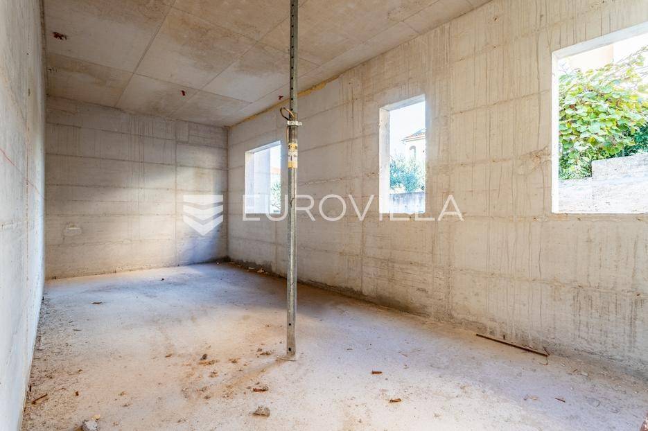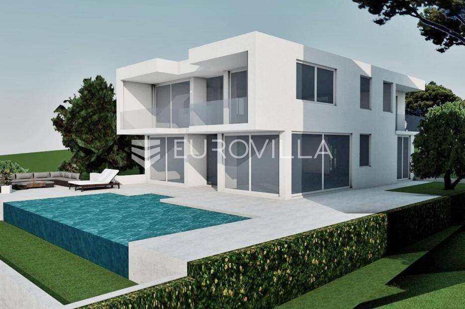 Čiovo, Okrug Gornji, u neposrednoj blizini jedne od najpoznatijih plaža, prodaje se moderna vila s bazenom u roh-bau fazi. Nekretnina je podjeljena na tri etaže i osmišljena kao luksuzna obiteljska kuća ili investicija za turistički najam.Podrumska etaža predviđena je za strojarnicu bazena, ostave, praonicu rublja te garažu koja omogućuje parkiranje dva automobila. Prizemlje se sastoji od ulaznog hodnika, garderobe, radne sobe, gostinjske spavaće sobe s vlastitom kupaonicom, dodatnog WC-a te prostranog dnevnog dijela koji objedinjuje kuhinju s blagovaonicom i dnevni boravak. Iz dnevnog prostora izlazi se na natkrivenu terasu i bazen površine 50 m², što stvara idealan prostor za boravak na otvorenom.Na prvom katu smještene su četiri spavaće sobe, svaka s pripadajućom kupaonicom, pri čemu sobe na zapadnoj strani pružaju lijep pogled na more. Objekt se prodaje u roh-bau stanju, a svi betonski radovi su u potpunosti završeni, što budućem vlasniku omogućuje završno uređenje prema vlastitim željama.Lokacija vile je izuzetno atraktivna zbog neposredne blizine mora, uređenih plaža i svih potrebnih sadržaja poput trgovina, restorana i kafića, čineći ovu nekretninu odličnim izborom kako za privatno korištenje, tako i za investiciju.Za sve dodatne informacije stojim na raspolaganju.... Više na eurovilla.hr, ID: 378707
