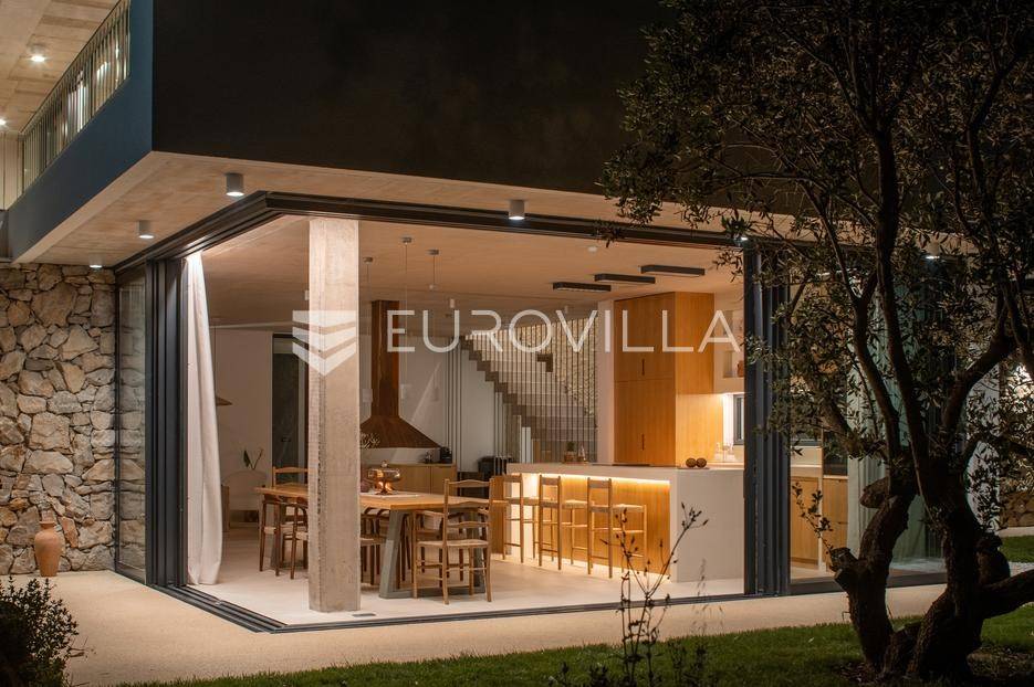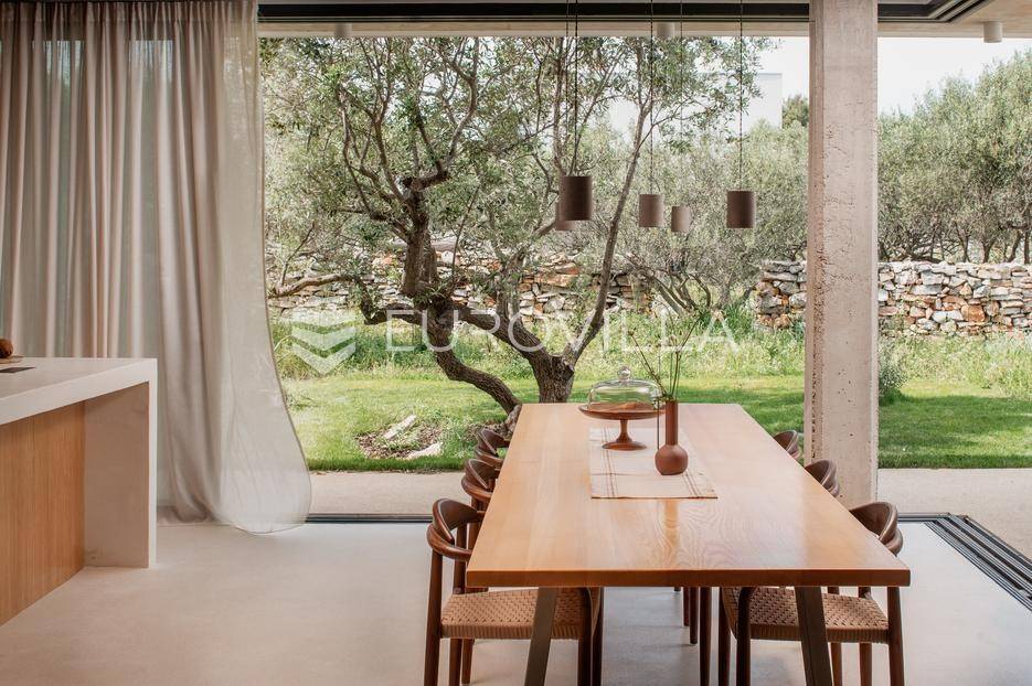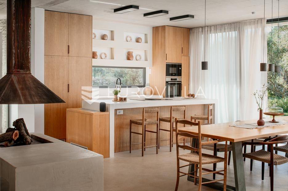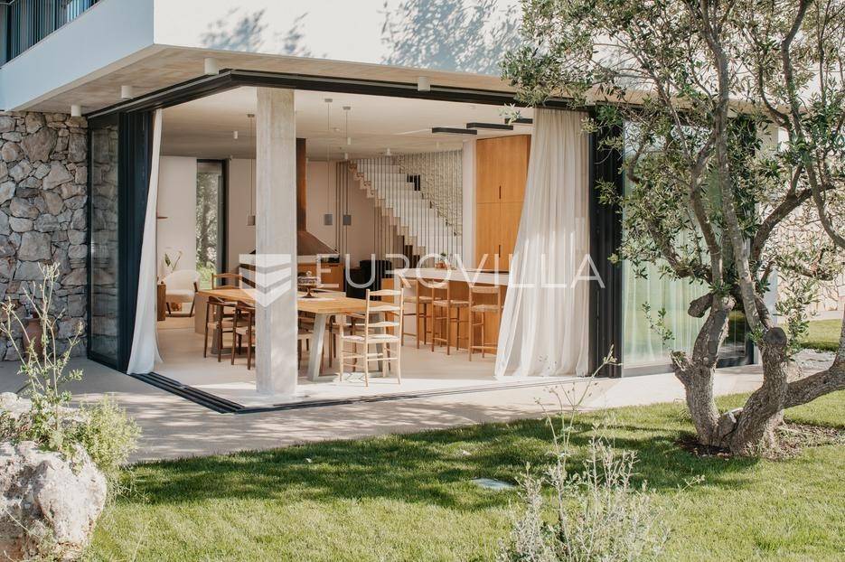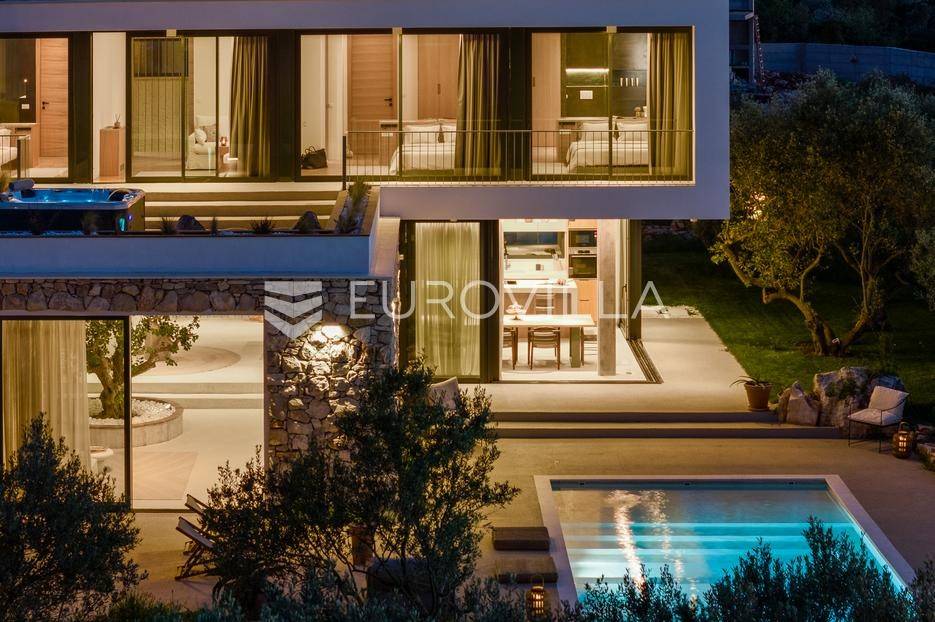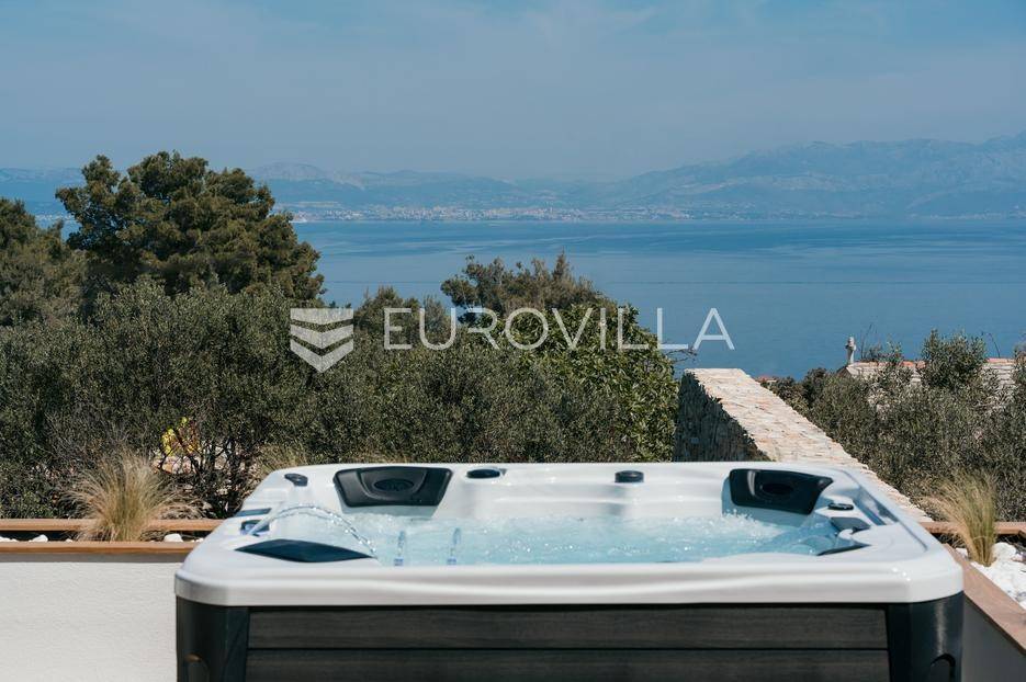 Šolta, elegantna i moderno uređena vila smještena na jednom od najljepših dalmatinskih otoka .Nekretnina se nalazi na uzdignutoj i mirnoj lokaciji u blizini mjesta Gornje Selo, s koje se pruža spektakularan panoramski pogled prema moru, Splitu i obližnjem otoku Braču.Vila je izgrađena 2024. godine na prostranom zemljištu od čak 1.800 m², koje pruža potpunu privatnost i osjećaj sigurnosti. Ukupne površine 270 m², nudi vrhunski komfor kroz tri spavaće sobe, od kojih svaka posjeduje vlastitu kupaonicu i izlaz na zajedničku terasu. Interijer kombinira suvremeni dizajn i prirodne materijale, s toplim drvenim podovima i pažljivo biranim detaljima koji prostoru daju profinjen karakter.Otvoreni dnevni prostor s kaminom, velikim staklenim stijenama i pogledom na more povezuje se s vanjskim dijelom kuće i stvara savršen ambijent za boravak tijekom cijele godine. Kuhinja je u potpunosti opremljena suvremenim uređajima i funkcionalnim rasporedom, dok vanjski dio vile dodatno oduševljava grijanim bazenom s električnim pokrovom, jacuzzijem, saunom, ledenom kadom (Chill tubs), ljetnom kuhinjom te prostorom za objedovanje na otvorenom.Cijeli vrt obogaćen je mediteranskim zelenilom, maslinama i začinskim biljem, čime se stvara dojam istinske harmonije s prirodom.Vila je tehnički sofisticirana i uključuje sustav podnog grijanja, sigurnosne kamere, brzi bežični internet (Starlink), pametni sustav za upravljanje i punjač za električna vozila. Garaža s automatskim vratima nudi smještaj za dva automobila, dok dodatna parkirna mjesta osiguravaju bezbrižno primanje gostiju.Zahvaljujući luksuznoj opremi, iznimnoj lokaciji i vrhunskoj opremljenosti, ova vila predstavlja izvrsnu priliku kako za osobno uživanje tako i za investiciju. Trenutno se uspješno iznajmljuje u segmentu visoko kategoriziranog turizma, uz mogućnost cjelovite usluge upravljanja i dočeka gostiju, što dodatno potvrđuje njezin investicijski potencijal. Savršena ravnoteža privatnosti, udobnosti i prirodne ljepote - idealna prilika za one koji traže kvalitetan životni prostor s notom mediteranskog luksuza.Za sve ostale informacije i upite, stojimo Vam uvijek na raspolaganju.... Više na eurovilla.hr, ID: 386195